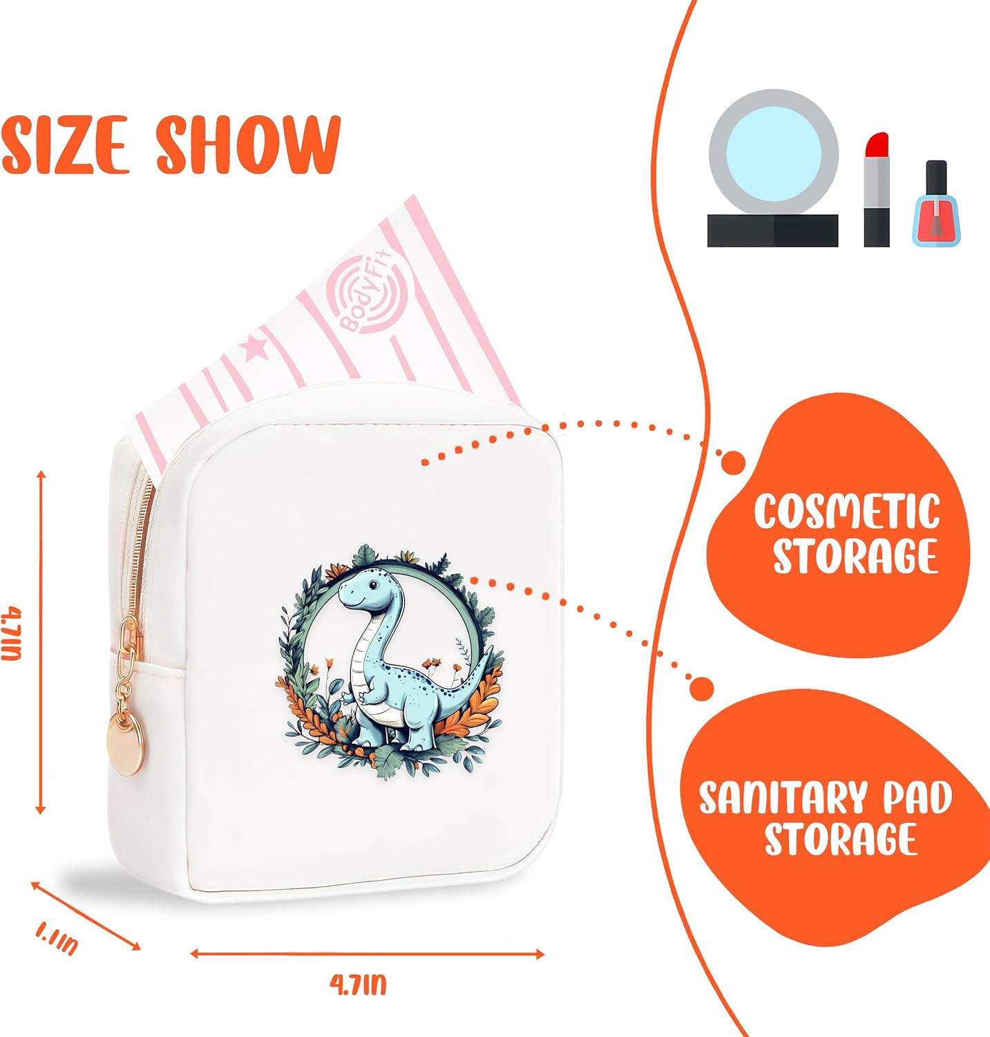 Dinosaur Mini Makeup Bag, Dinosaur Gift For Women Girls, Cute Portable Zipper Pouch Cosmetic Bag For Teen Girls Kids, Small Storage Bag For Sanitary Pad, Period napkin bag!