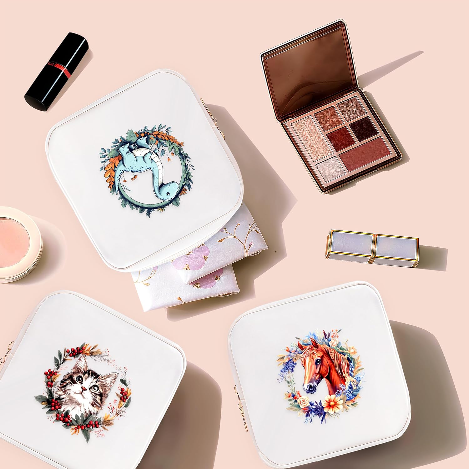 - Small cosmetic bag are great for storing daily small items such as lipstick, cushion cream, blush, earphones and jewelry; the portable makeup bag will be convenient for you to touch up your makeup anytime