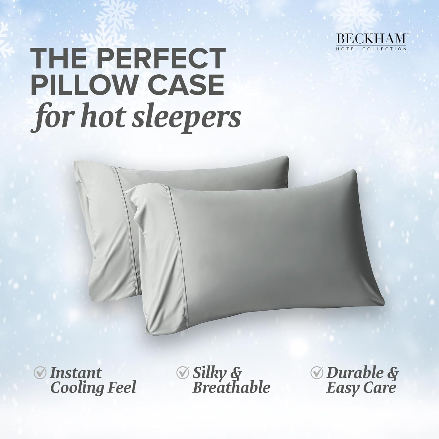 Beckham Hotel Collection Cooling Pillowcases for Hot Sleepers, Standard/Queen Size Set of 2, Cool Bedding, Envelop Closure, Silky Soft, Breathable, Moisture-Wicking, Dark Gray