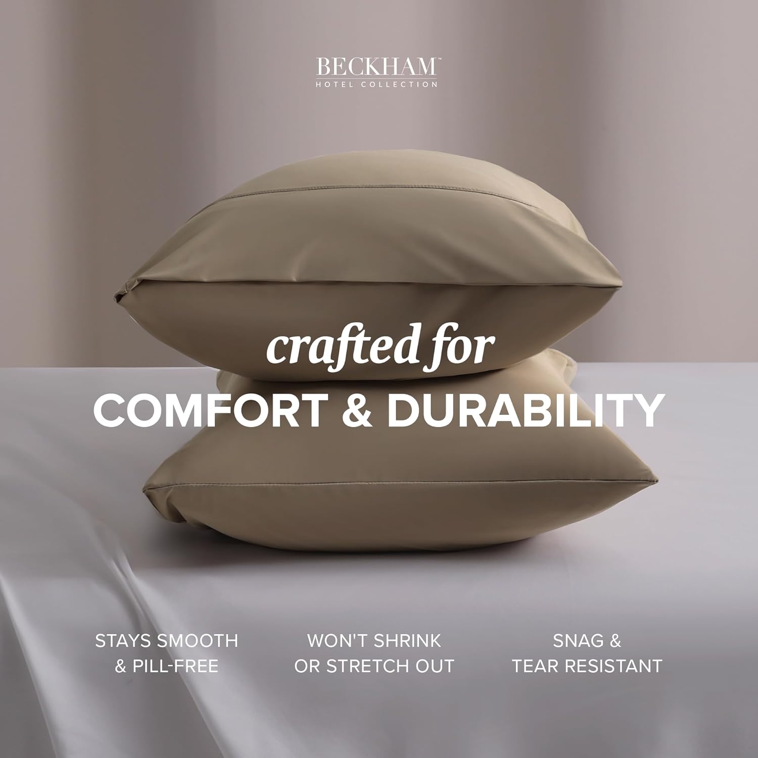 Beckham Hotel Collection Cooling Pillowcases for Hot Sleepers, King Size Set of 2, Cool Bedding, Envelop Closure, Silky Soft, Breathable, Moisture-Wicking, Sand