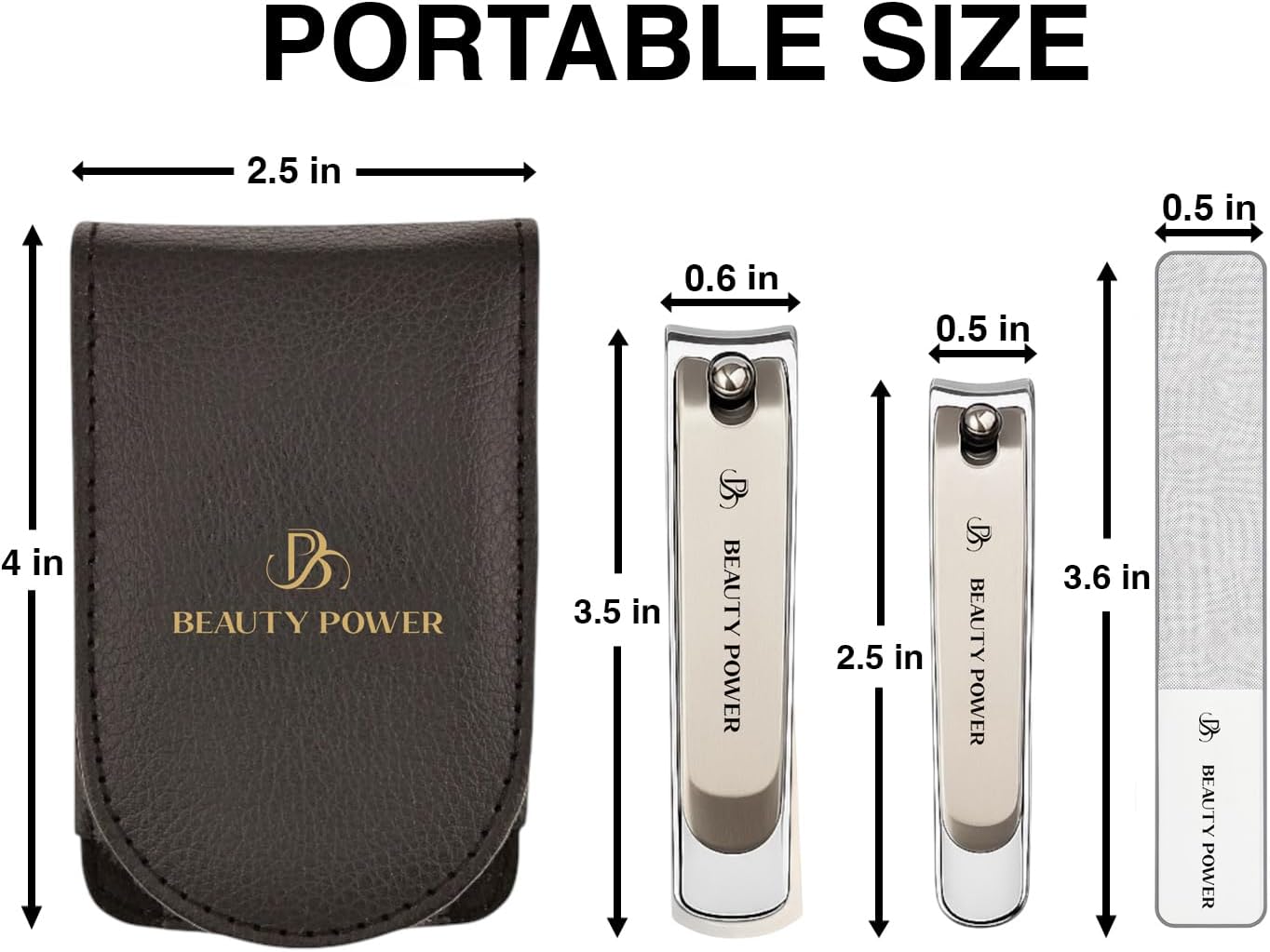 - 3-IN-1 NAIL CLIPPERS SET FOR COMPLETE CARE: Includes large toenail clippers, medium fingernail clippers, and a premium glass nail file - a professional grooming kit designed for trimming, shaping, and smoothing nails with precision. Ideal for men, women, travelers, and anyone who values personal grooming at home or on the go.