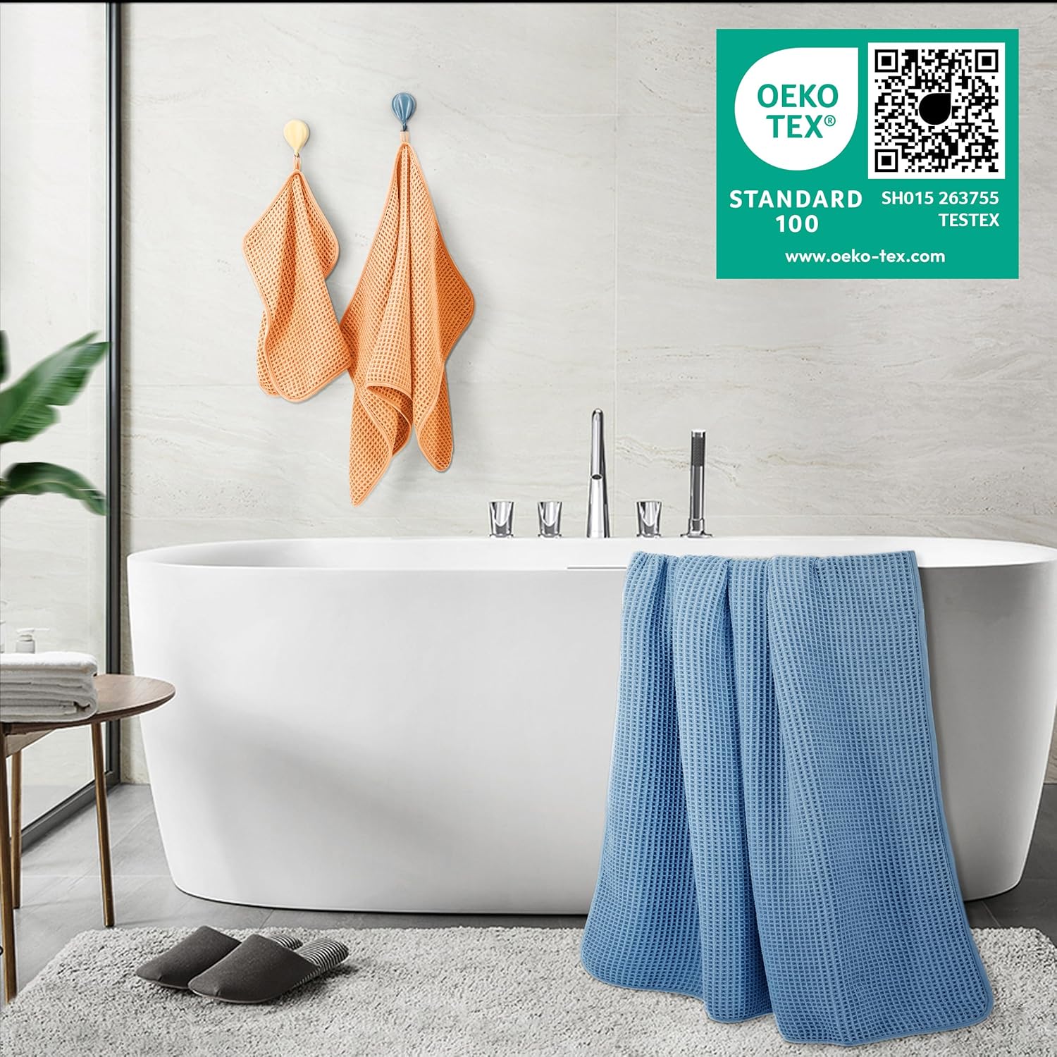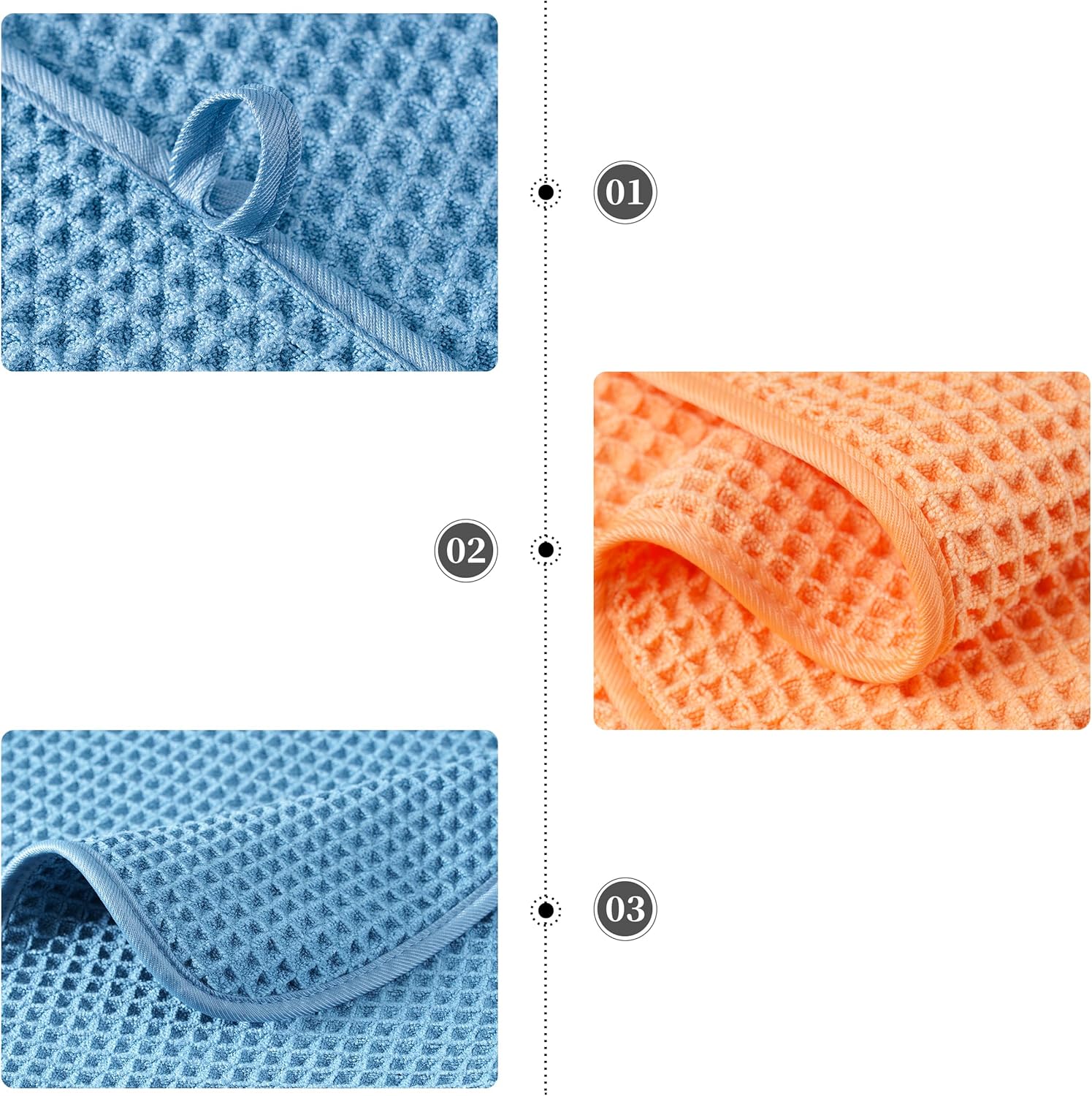 - Microfiber thoroughly dries faster and gentler than traditional fibers; waffle weave feels smoother on your skin and is less likely to collect lint or debris
