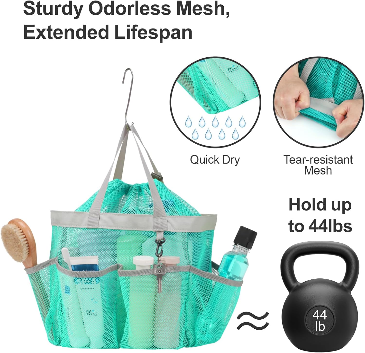 - Sturdy Odorless Mesh for Long-lasting Use: Crafted from tough, tear-resistant mesh that dries quickly and stays odorless, our mesh shower caddy keeps your toiletries clean and dry—no more sticky hands or unpleasant smells. With a strong build supporting up to 44 lbs, it securely organizes all your essentials