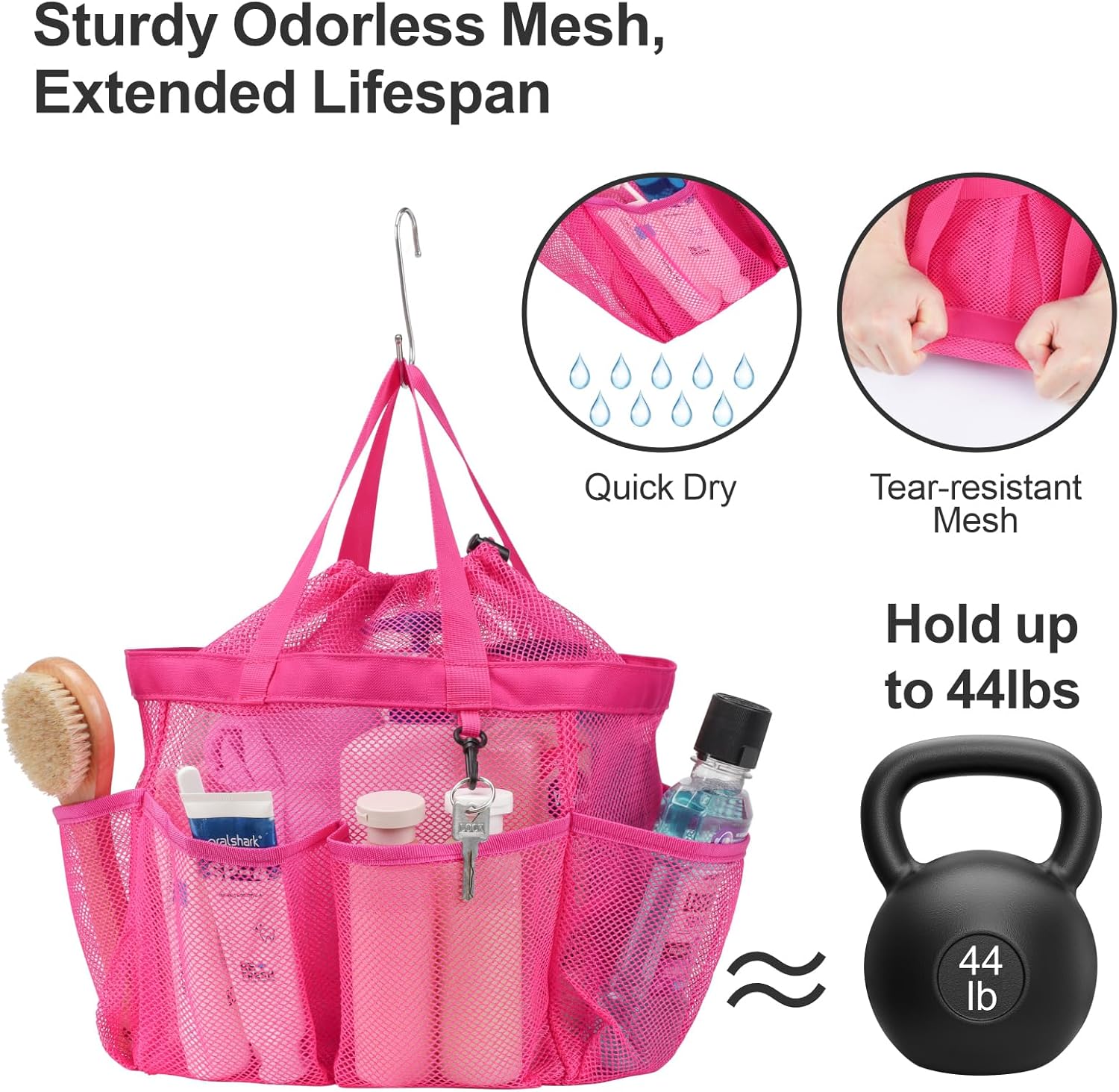 - Sturdy Odorless Mesh for Long-lasting Use: Crafted from tough, tear-resistant mesh that dries quickly and stays odorless, our mesh shower caddy keeps your toiletries clean and dry—no more sticky hands or unpleasant smells. With a strong build supporting up to 44 lbs, it securely organizes all your essentials