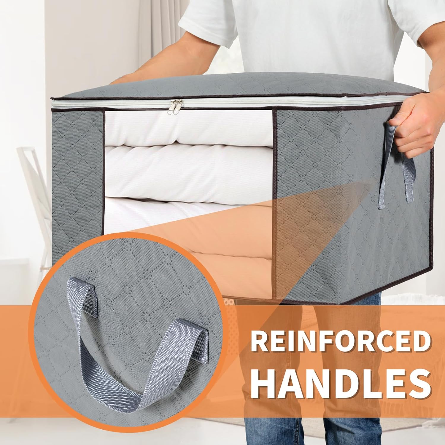 combocube 6 Pack Closet Organizers and Storage Containers, Clothes Storage Bins, Storage Bags with Large Clear Window & Handles for Comforter, Pillow, Quilt, Bedding, Clothes
