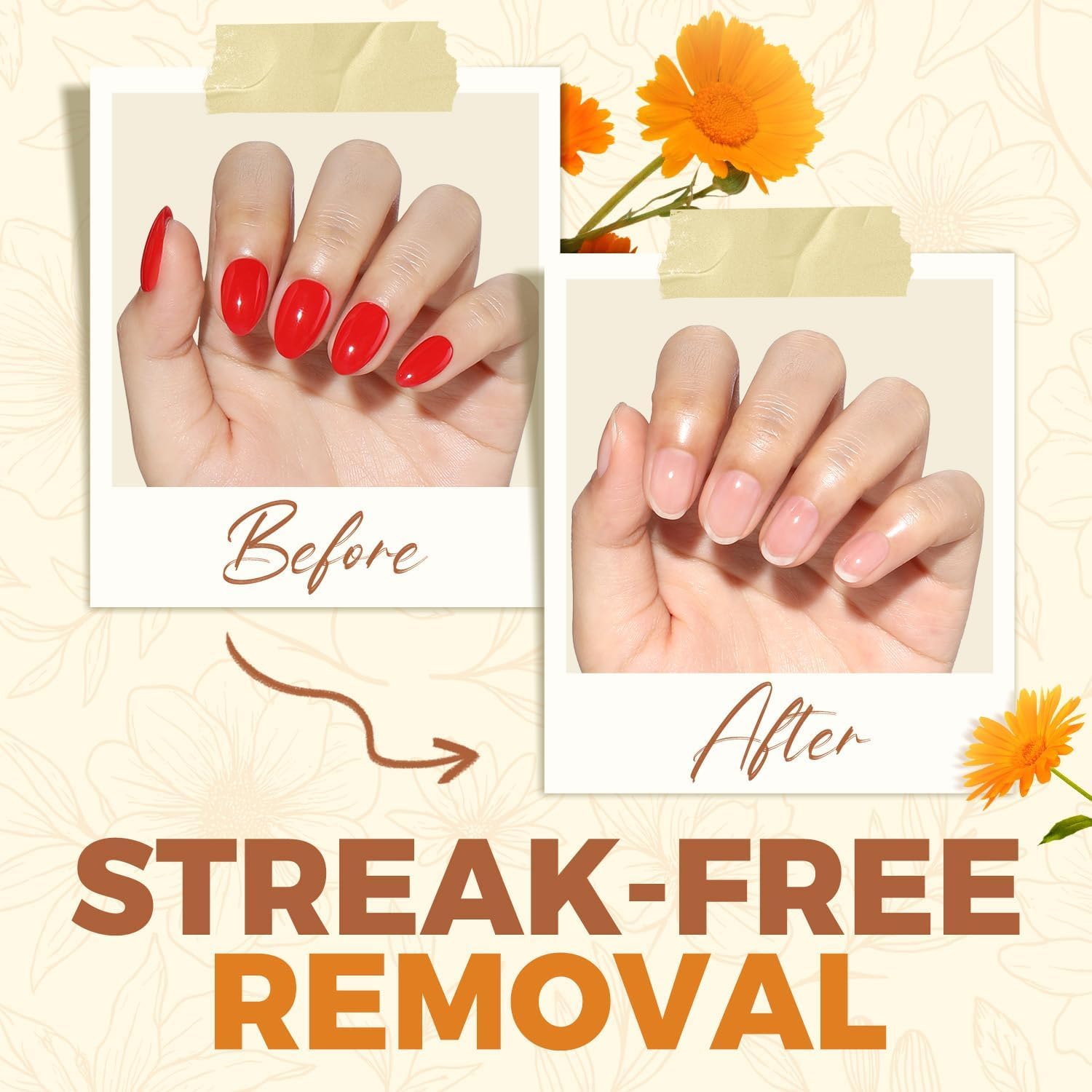 - Healthy Formula: Our well-picked refined acetone is mixed with calendula essential oil, ensuring residue-free nail removal while deeply moisturizing your nails, without whitening or drying.