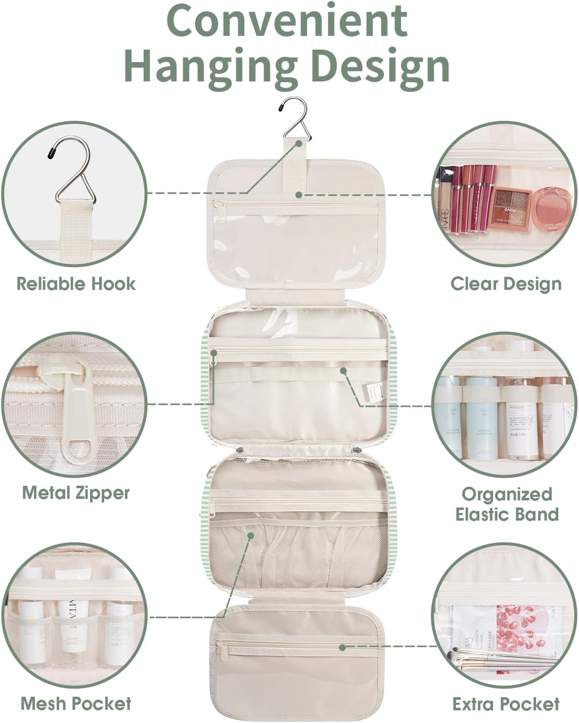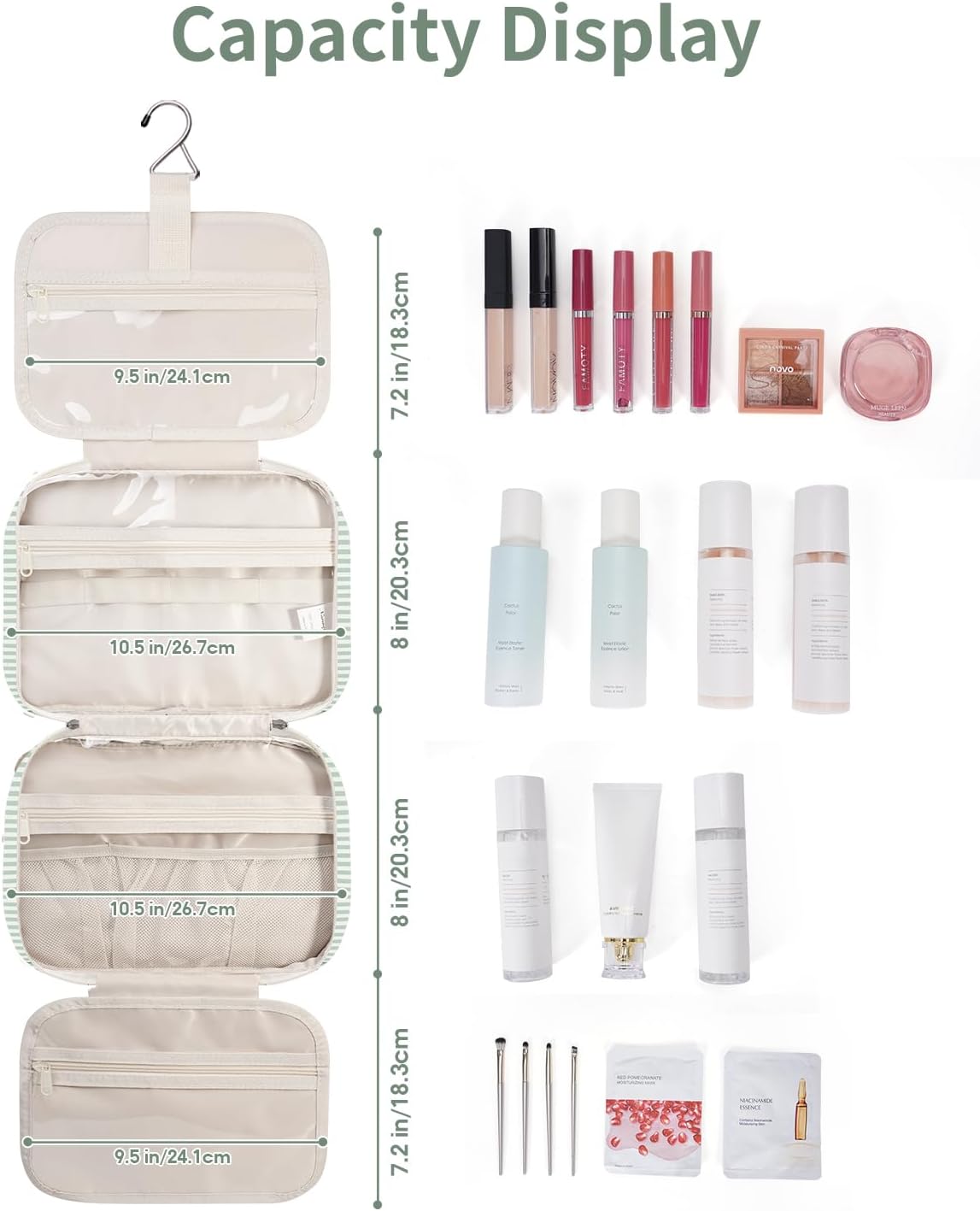 Narwey Striped Hanging Toiletry Bag for Women Travel Makeup Bag Organizer Toiletries Bag for Travel Size Essentials Accessories Cosmetics (Mint Green Stripe (Medium))