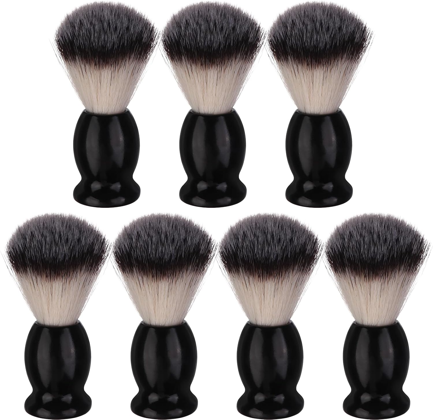 7Pcs Men Shaving Brush Wood Handle, Professional Salon Tools Hand Crafted Shaving Brush Wood Handle Black Wood Handle Shave Brushes Handmade Nylon Hair Brush for Men