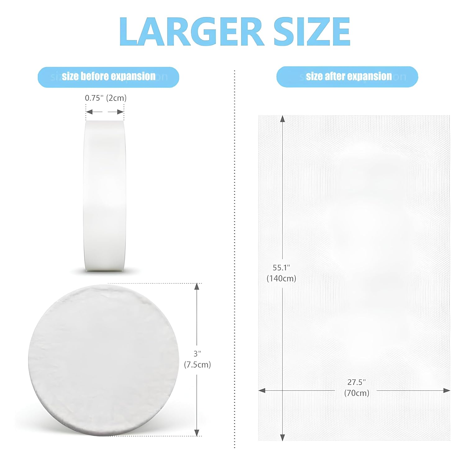 - Oversized Coverage & Convenient Pack 70×140cm extra-large size Disposable Bath Towels for Travel provides full-body coverage, while each compressed towel tablet reduces 80% luggage space. Perfect for travel, hiking, and camping.