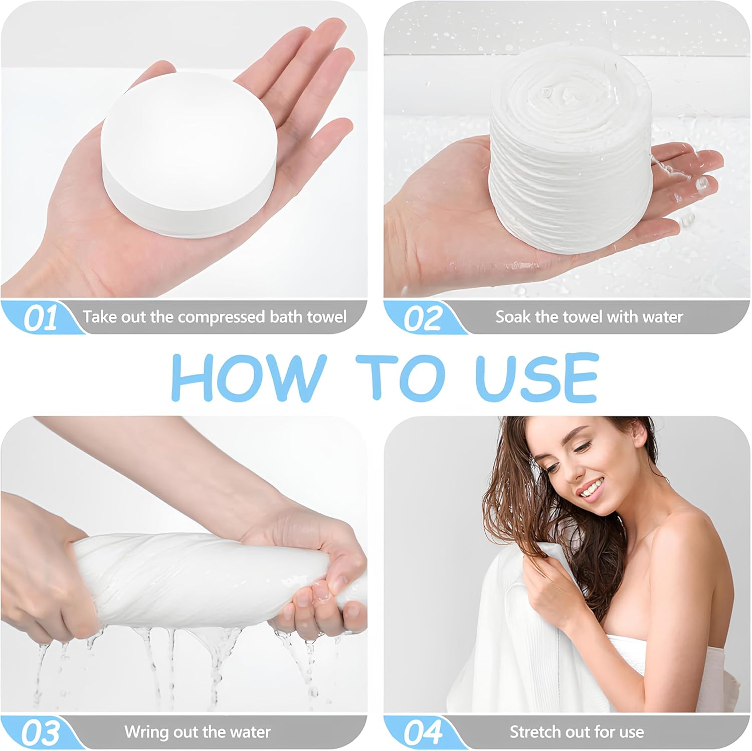 - Instant Activation & Quick-Dry Technology Simply add water to expand the Disposable Bath Towels for Travel, then enjoy fast-drying performance ideal for gym workouts, beach trips, or hotel stays.