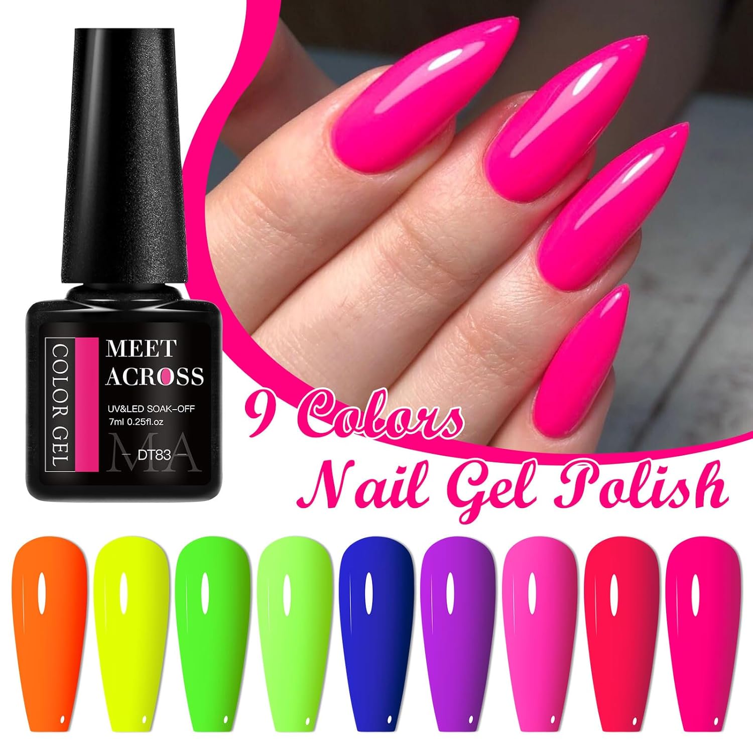 - What You Get: 9 Colors Gel Nail Polish + 3PCS Function Gel (0.25oz/7ml each bottle). 9 colors beautiful shades of popular and trendy colors suitable for all seasons and daily routine life!