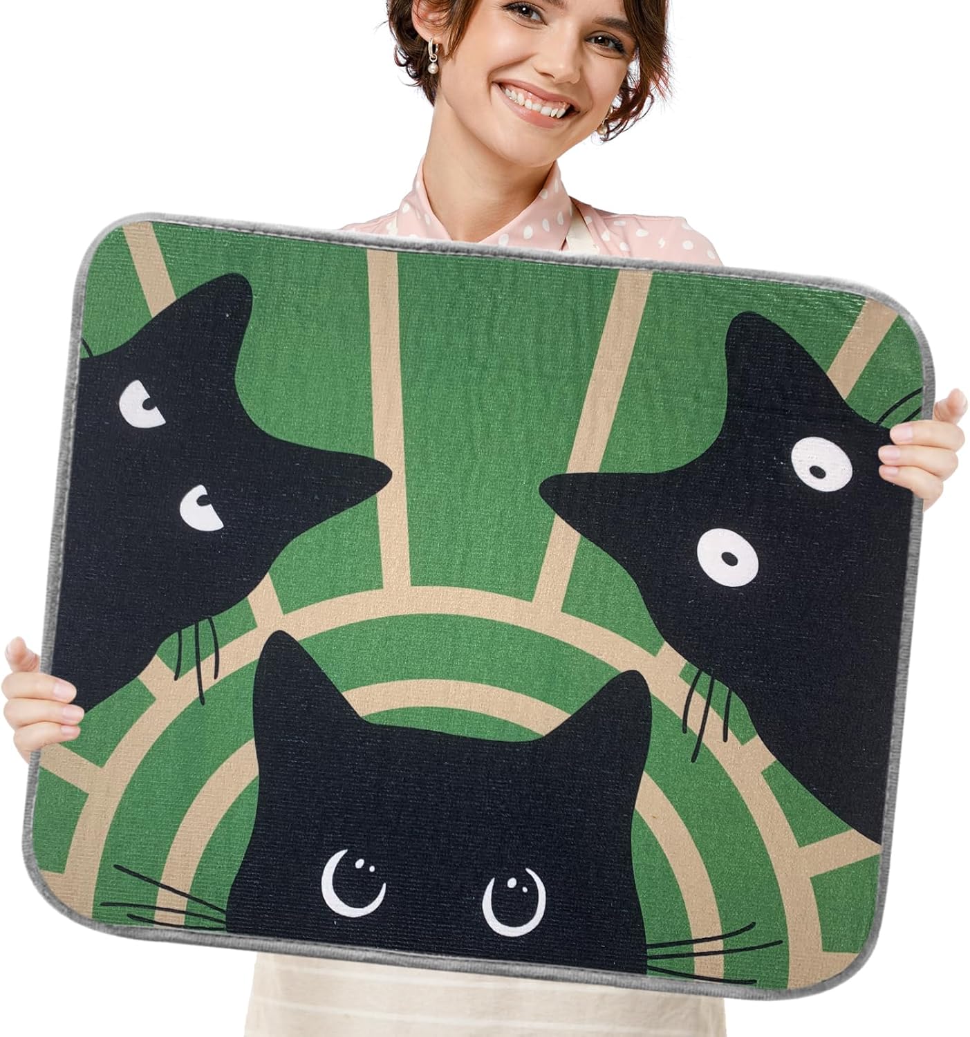 SHIYUE Dish Drying Mat for Kitchen Counter Super Absorbent Spring Kitchen Decor Microfiber Drying Matainers Rack Fast Pad Dish Drainer Mats(Three Cats,18''x24'')