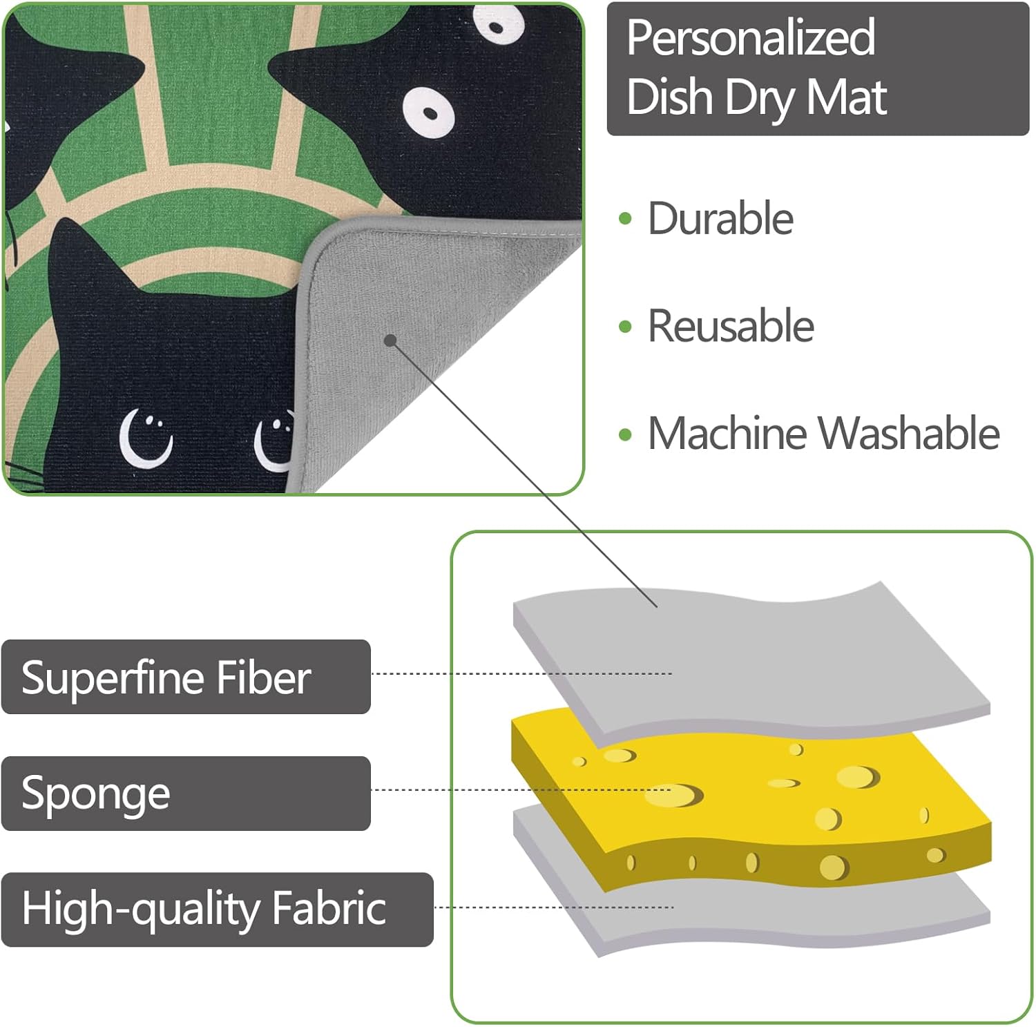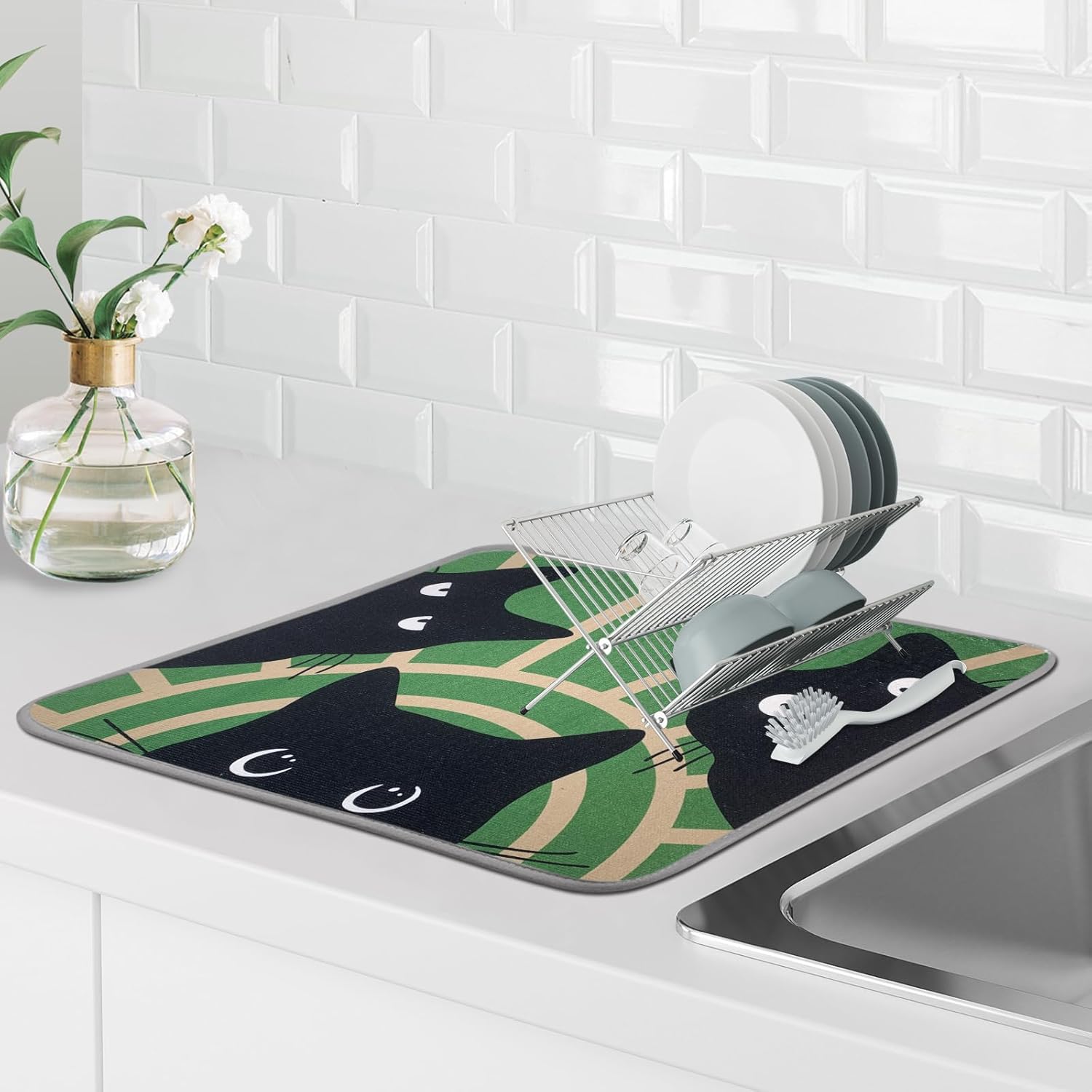 - 🌈 CREATIVITY AND STRONG ABSORPTION: can't stand wet dishes and dry mats? Buy one of our dish mat drying kitchen mat. microfiber dish drying mat, the surface can quickly absorb water 2-4 times its own weight. Help your crockery and tableware dry faster and more hygienically, and keep the table completely dry