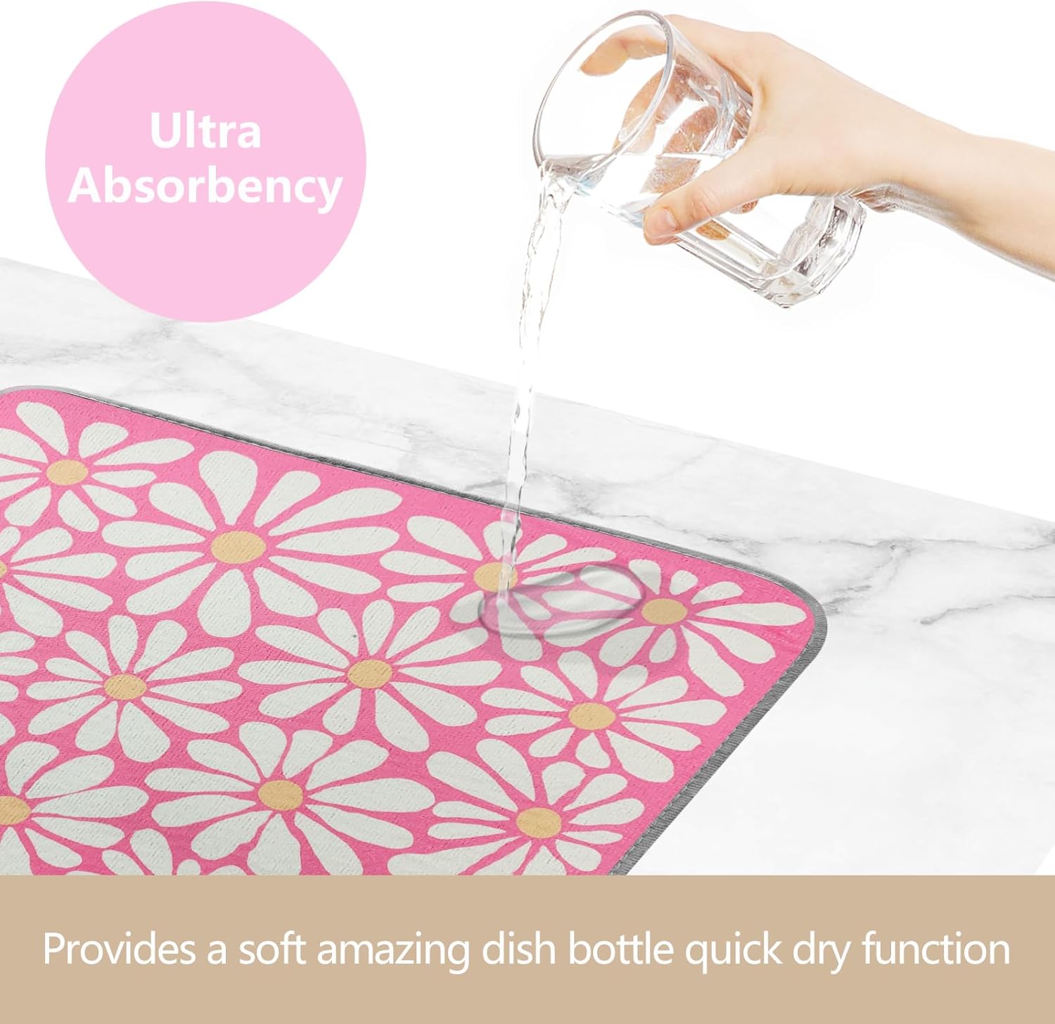SHIYUE Dish Drying Mat for Kitchen Counter Super Absorbent Spring Kitchen Decor Microfiber Drying Matainers Rack Fast Pad Dish Drainer Mats(Pink Flower,16''x18'')