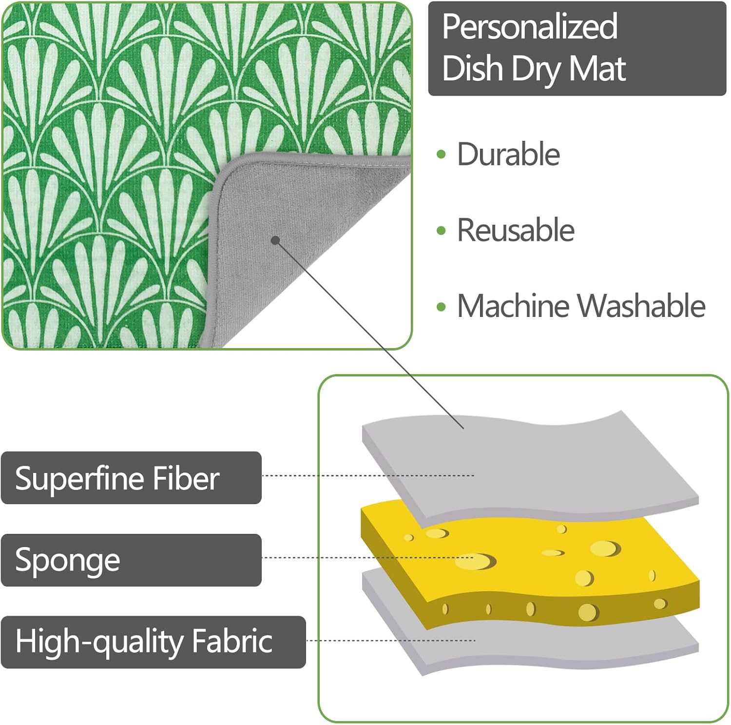 - 🌈 CREATIVITY AND STRONG ABSORPTION: can't stand wet dishes and dry mats? Buy one of our dish mat drying kitchen mat. microfiber dish drying mat, the surface can quickly absorb water 2-4 times its own weight. Help your crockery and tableware dry faster and more hygienically, and keep the table completely dry