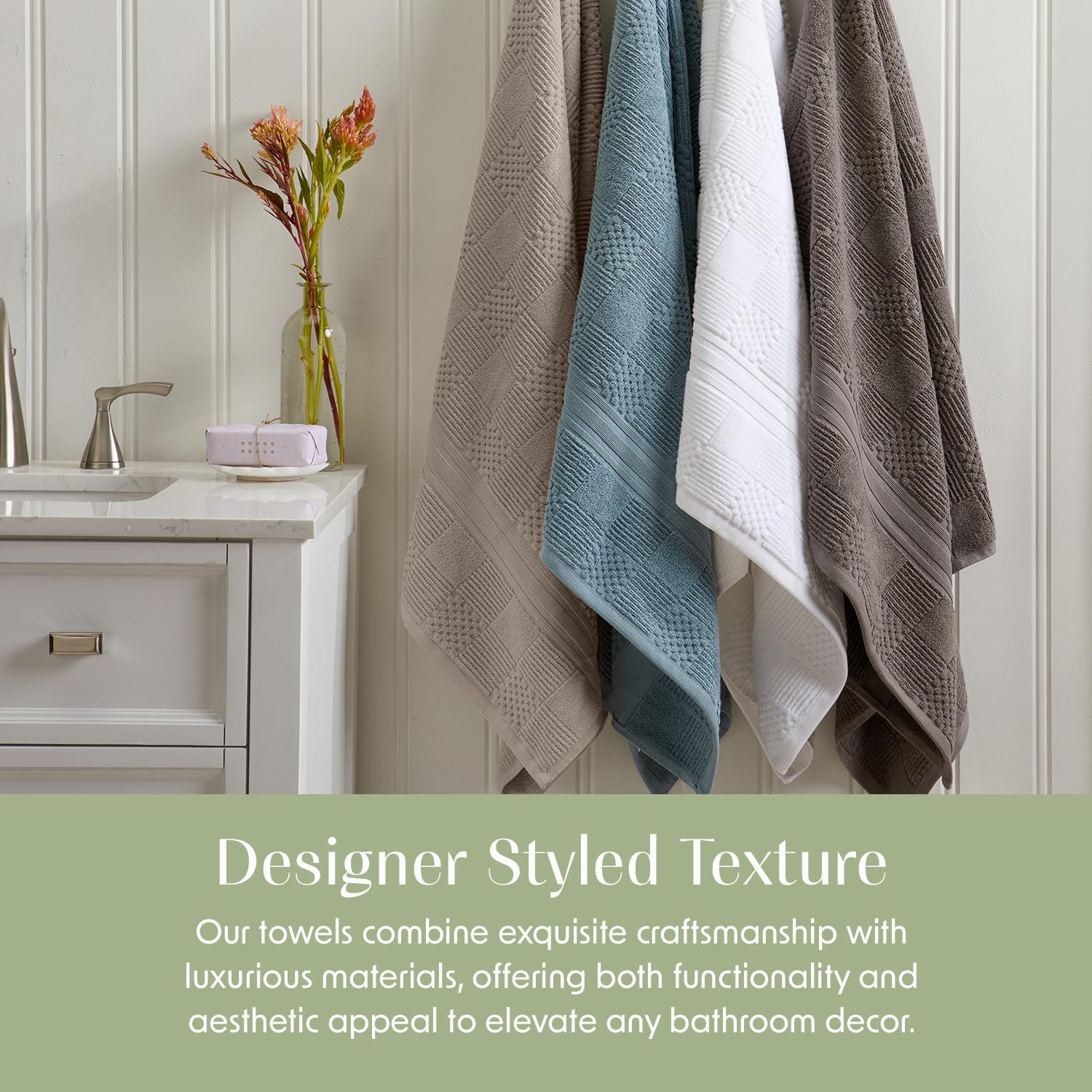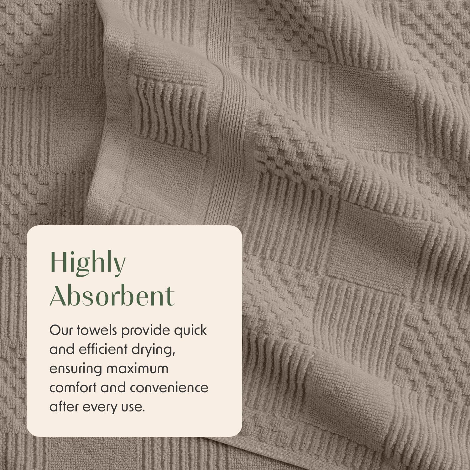 Springtree Home 100% Cotton Bathroom Towel Set | 6 Piece Set - Brown Bath Towels | Geometric Textured Design | Absorbent & Quick-Dry | Oeko-TEX® Standard 100 Cotton | Myla Collection - Cobblestone