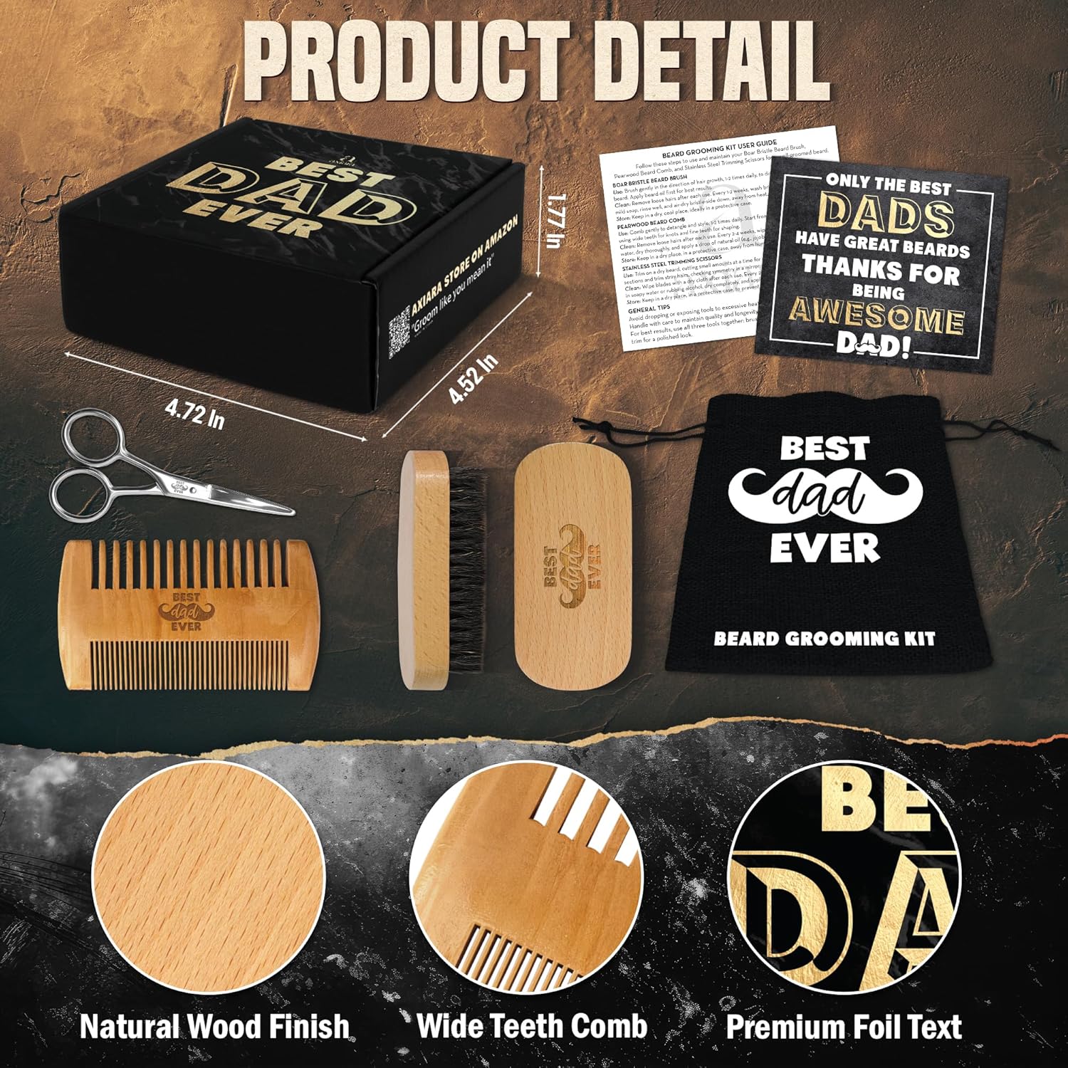 - FATHERS DAY GIFTS FOR DAD - Surprise your dad with this thoughtful Fathers Day gift that speaks volumes. This beard grooming set includes a boar bristle brush, pearwood comb, and stainless scissors, making it perfect for Fathers Day gifts from daughter wife kids. A unique pick for funny Fathers Day gifts, Fathers Day gifts from son, Fathers Day card, or happy Fathers Day card gifts, itās a daily reminder that he's the best.