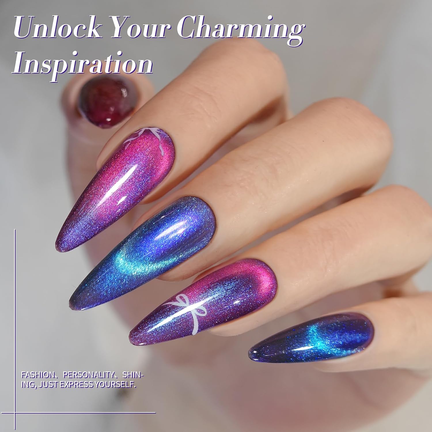 Born Pretty Magnetic Gel Nail Polish Set,Purple Blue Cat Magnetic Eye Gel Jelly Glass Crystal Magnetic Gel Polish Nail Art Manicure Kit 6PCS