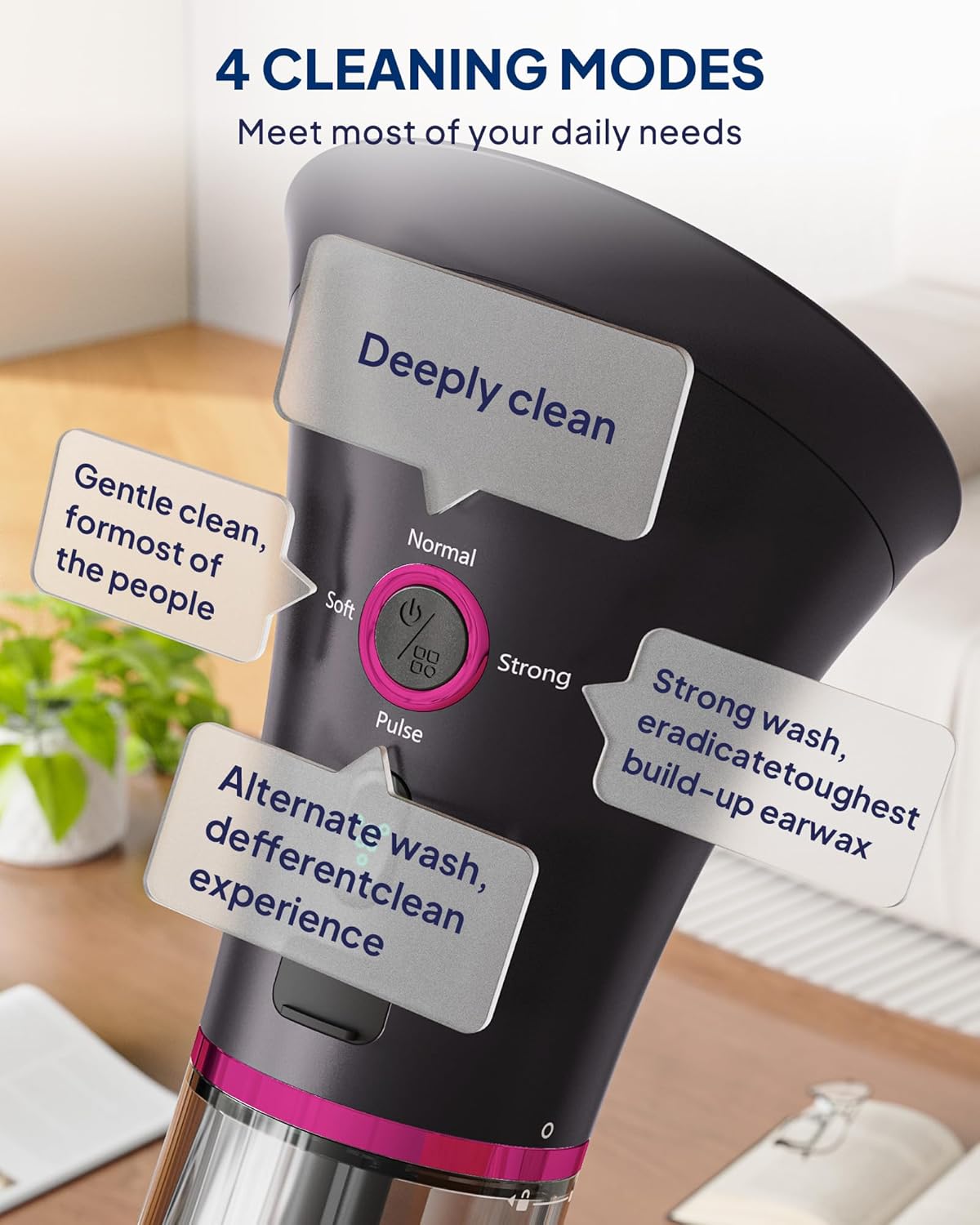 - Effective Four Water Pressure Settings: This triple jet ear cleaner offers four pressure levels to suit your needs. Simply press the Power/Mode button to select the intensity