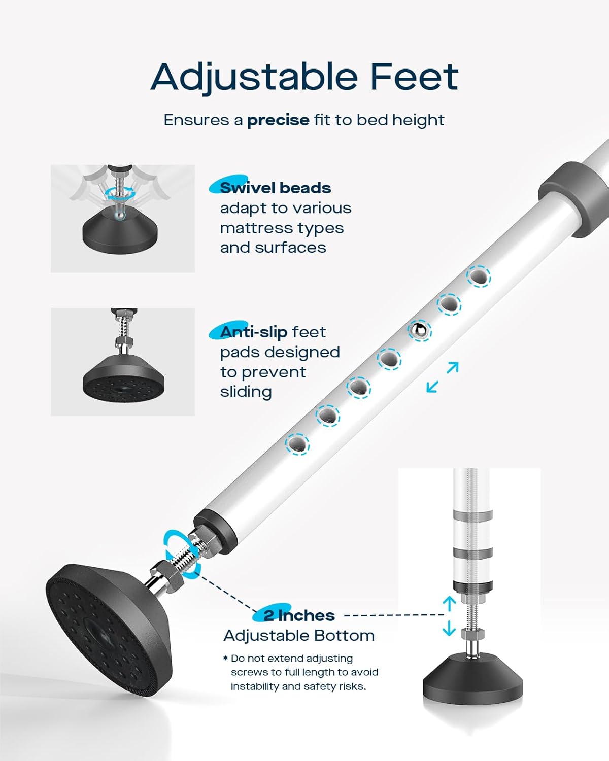 - ă Adjustable Height for Most Beds ăAdjustable bed rails for elderly adults fit twin, full, queen, and king beds. Legs adjust 13.4"â22" for perfect height. Versatile bed rail works as bed cane or grab bar to aid seniors with mobility needs.