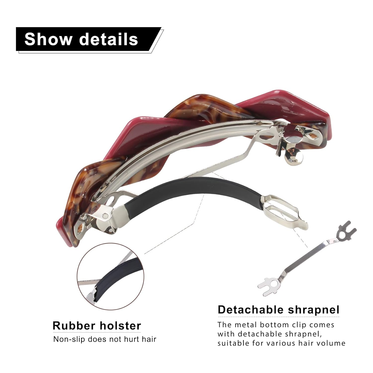 - 【CHIC DESIGN & MATERIAL】 Classic tortoise shell pattern compliments your daily outfit and special occasions as well,make you hair style charmer and elegant. The springs are made of high quality acrylic that endures daily wear. And the anti-slip design makes it hold your hair in place.