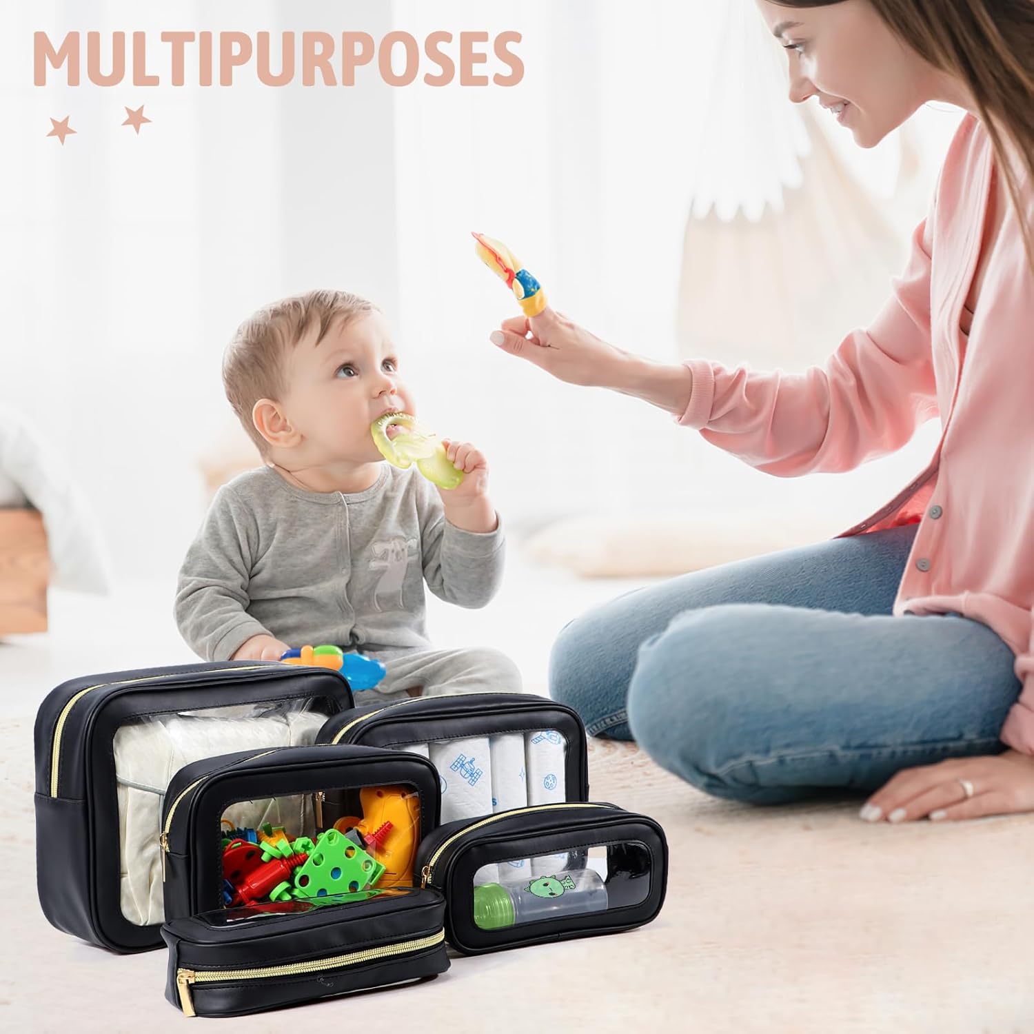 5PCS Diaper Bag Organizer Pouch Set, TSA Approved Toiletry Bag,Clear Waterproof TPU Makeup Bag Set Travel Organizer Bags for Women and Kids
