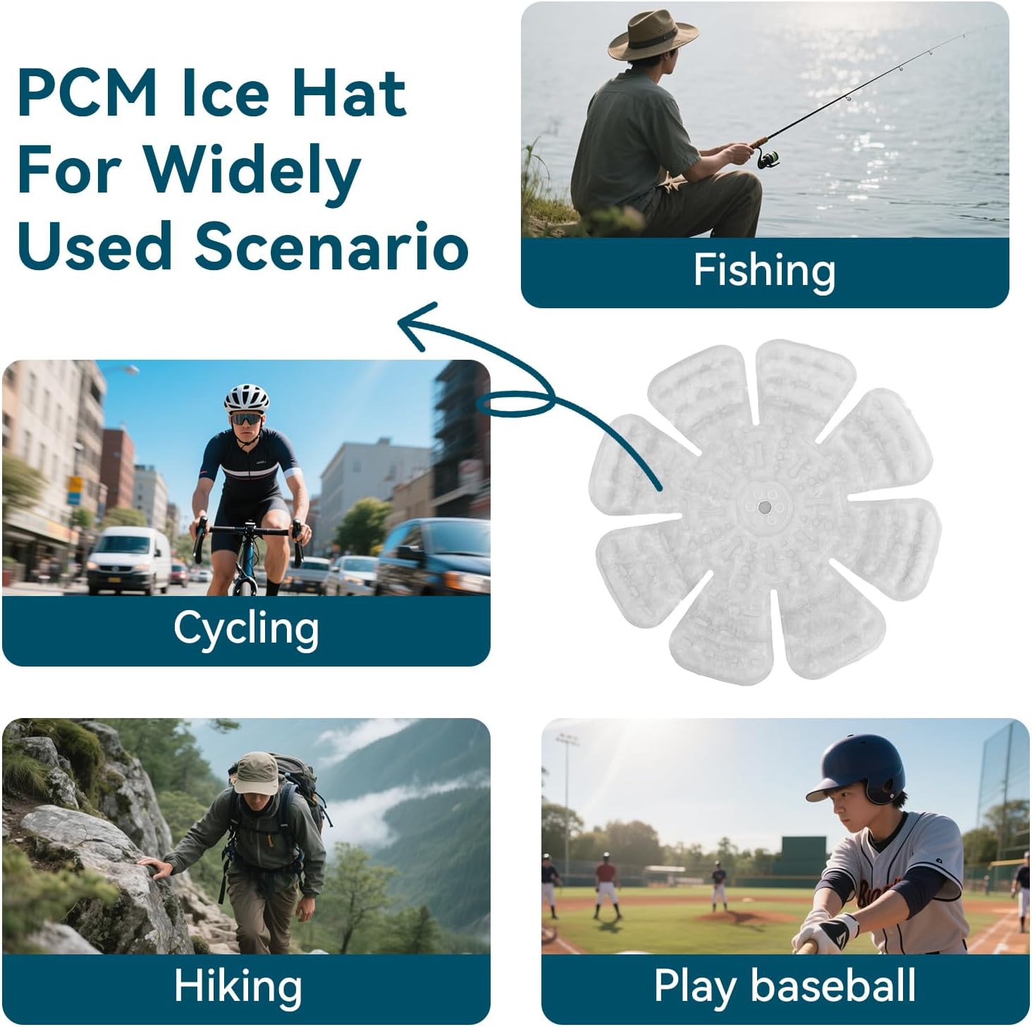 - Suitable for Indoor and Outdoor Use: PCM Cold Pack, ideal for outdoor work and sports, suitable for helmets, bucket hats, cycling hats, baseball hats, sun hats. whether you are hiking, cycling, or working in the farm, ice hat can instantly cool your head.