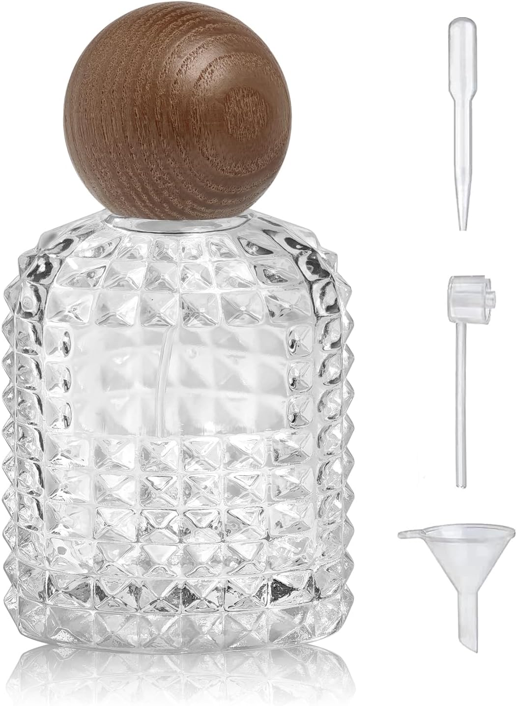 - Package:1 Pack 50ml(1.7Oz)Frosted Glass Perfume Spray bottle and and 3 kinds of perfume dispenser(1 funnel,1 dropper,1 transferer).It is easy to dispense liquid into the perfume atomizer.