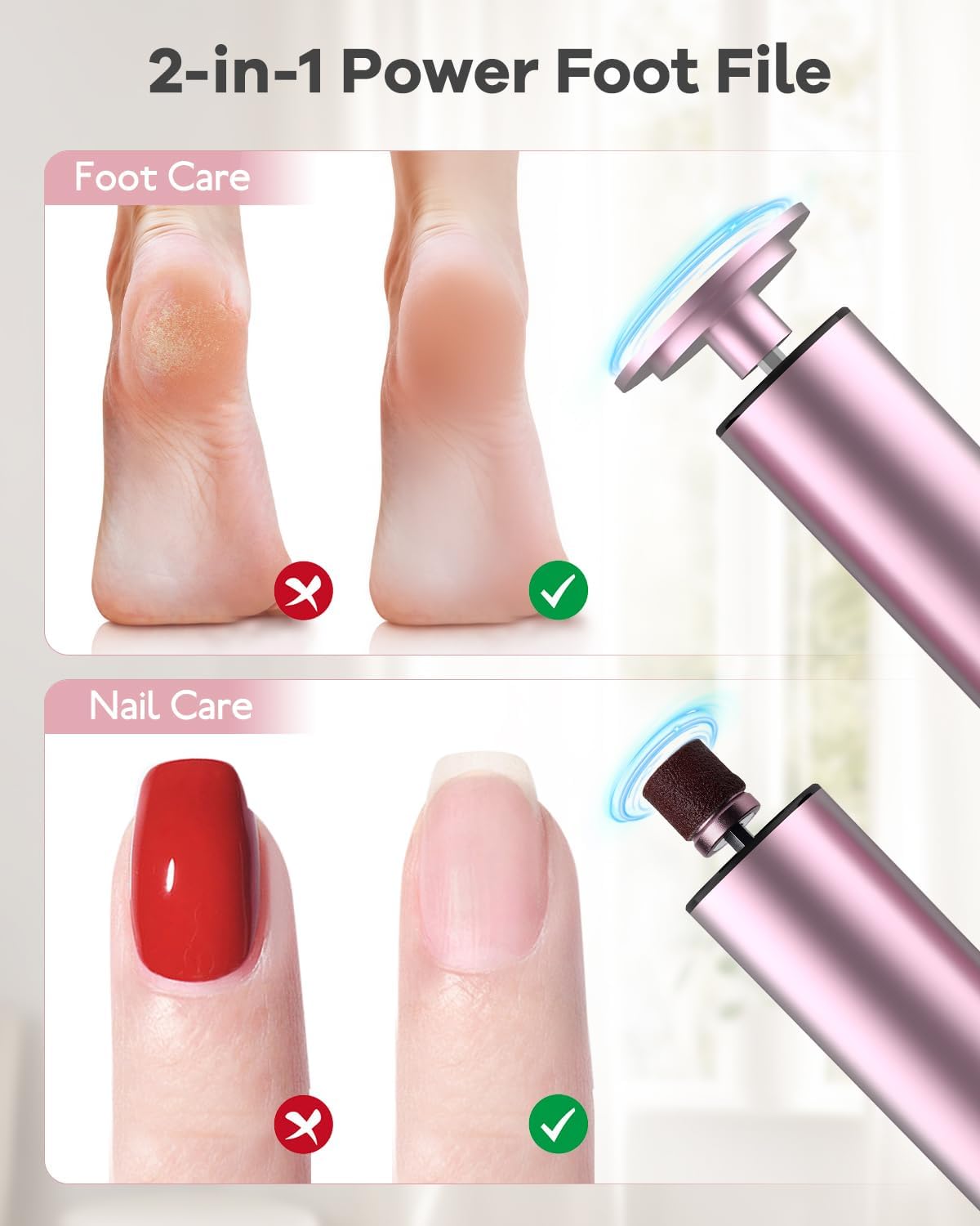 - SAFETY AUTO-STOP: Electric callus remover for feet prevents over-filing with auto-stop. Ergonomically tested non-slip grip ensures secure operation. Designed for effective removal of hardened skin and calluses with controlled pressure