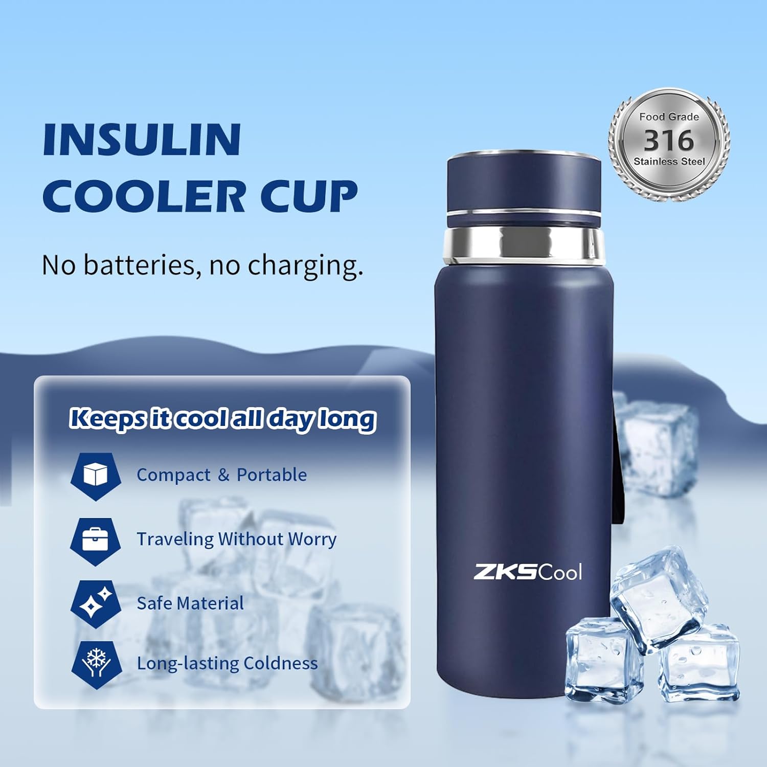 Insulin Cooler Travel Case – TSA Approved 24H Medication Cooler, Large Capacity Fits 3–5 Pens with Reusable Ice Pack – Lightweight Diabetes Travel Bag for Medications (Blue)