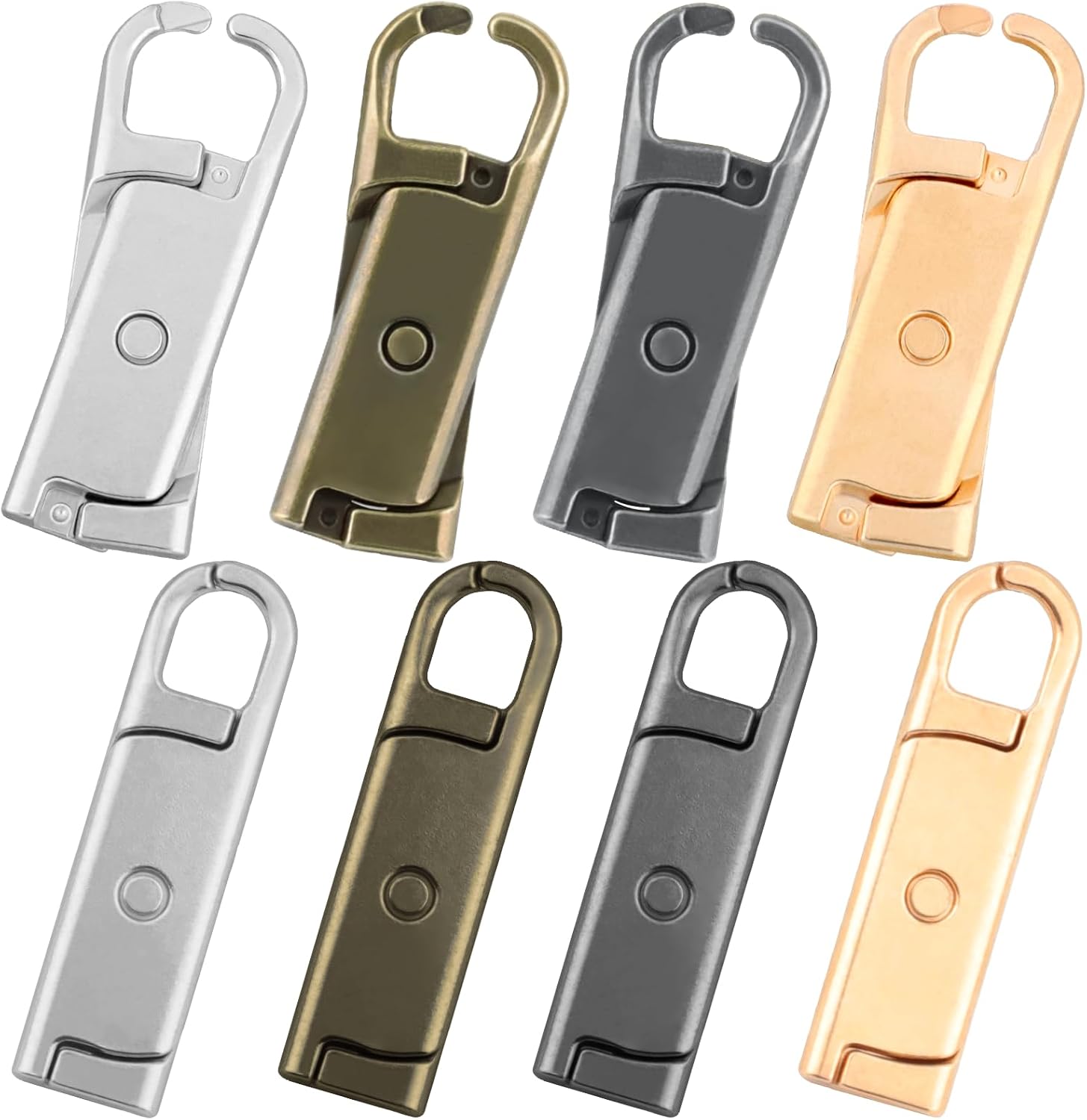 Zipper Pull Replacement (Upgraded),8 Pcs Detachable Replacement Zipper Pull Tabs for Luggage Clothing Jackets Backpacks Boots Purse Coat(Silver, Bronze, Gold, Gun Black)