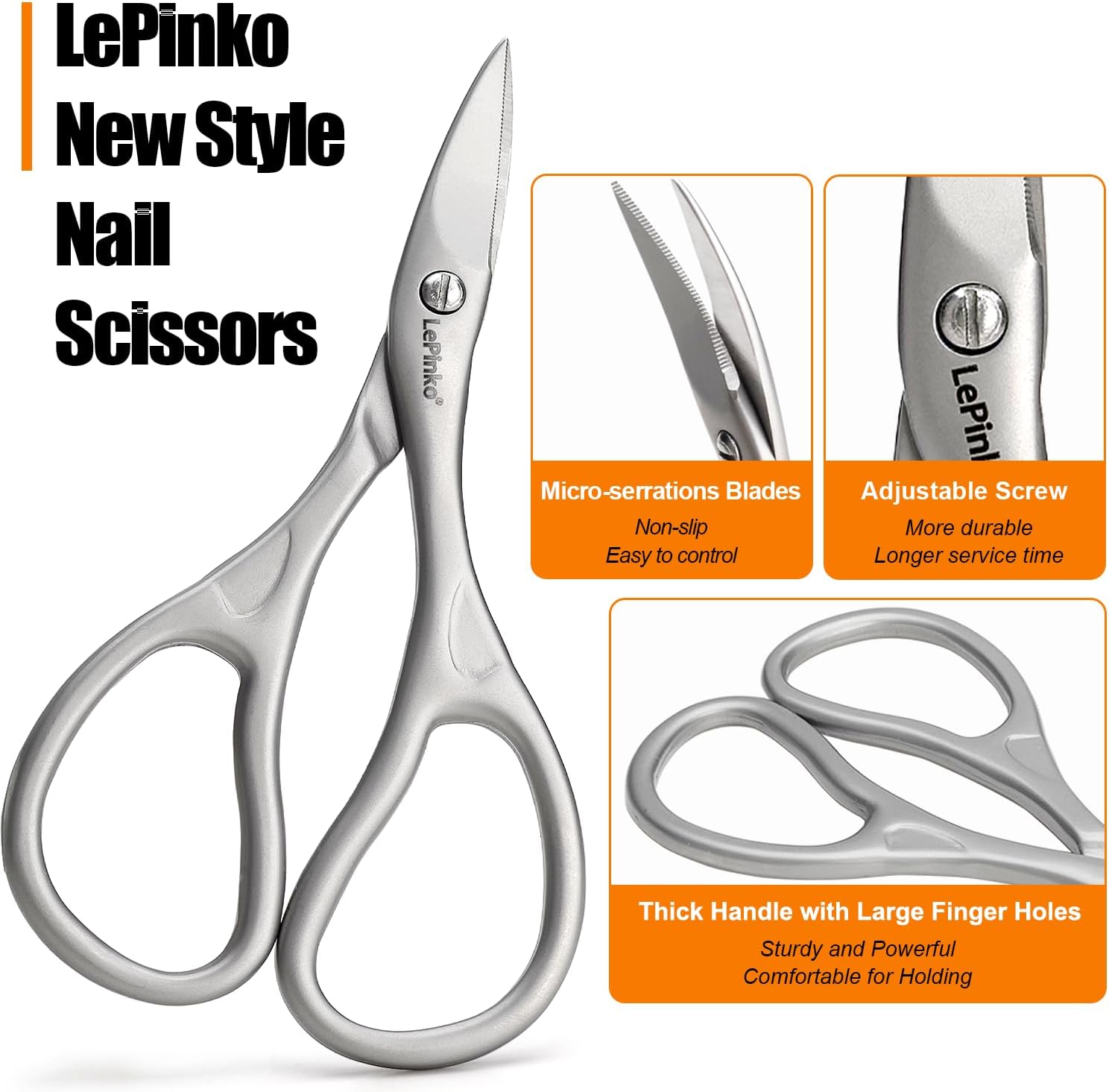 LePinko Professional Nail Scissors Kit, Micro-serrations Blades, Both for Manicure and Pedicure, Stocking Stuffers Gifts For Men and Women
