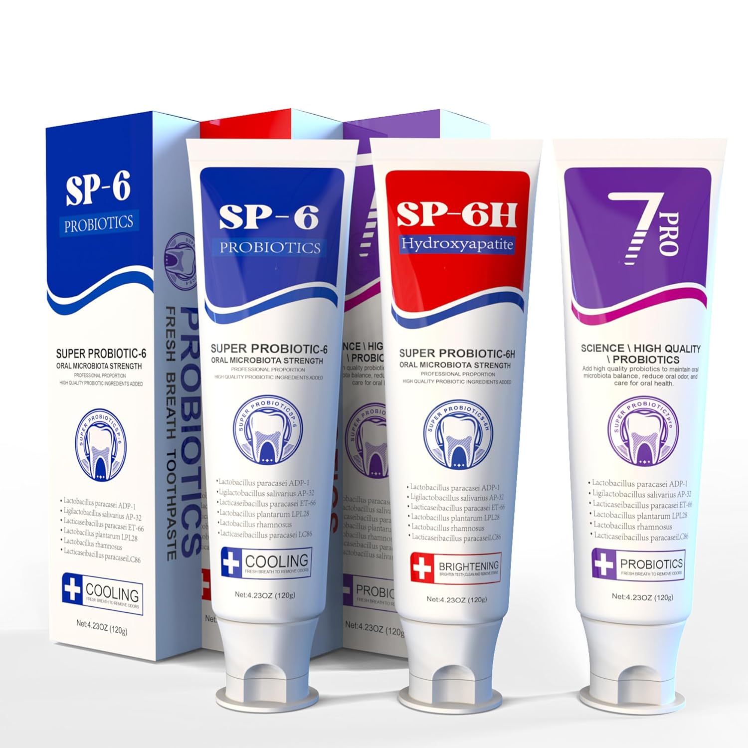 SP-6 Toothpaste Set, 6 Probiotics for Whitening & Cooling Fresh Breath, and 7- Pro Intense Whitening, Fluoride-Free, Safe for Enamel, Deep Brigthtening & Freshness 3 in1 Set