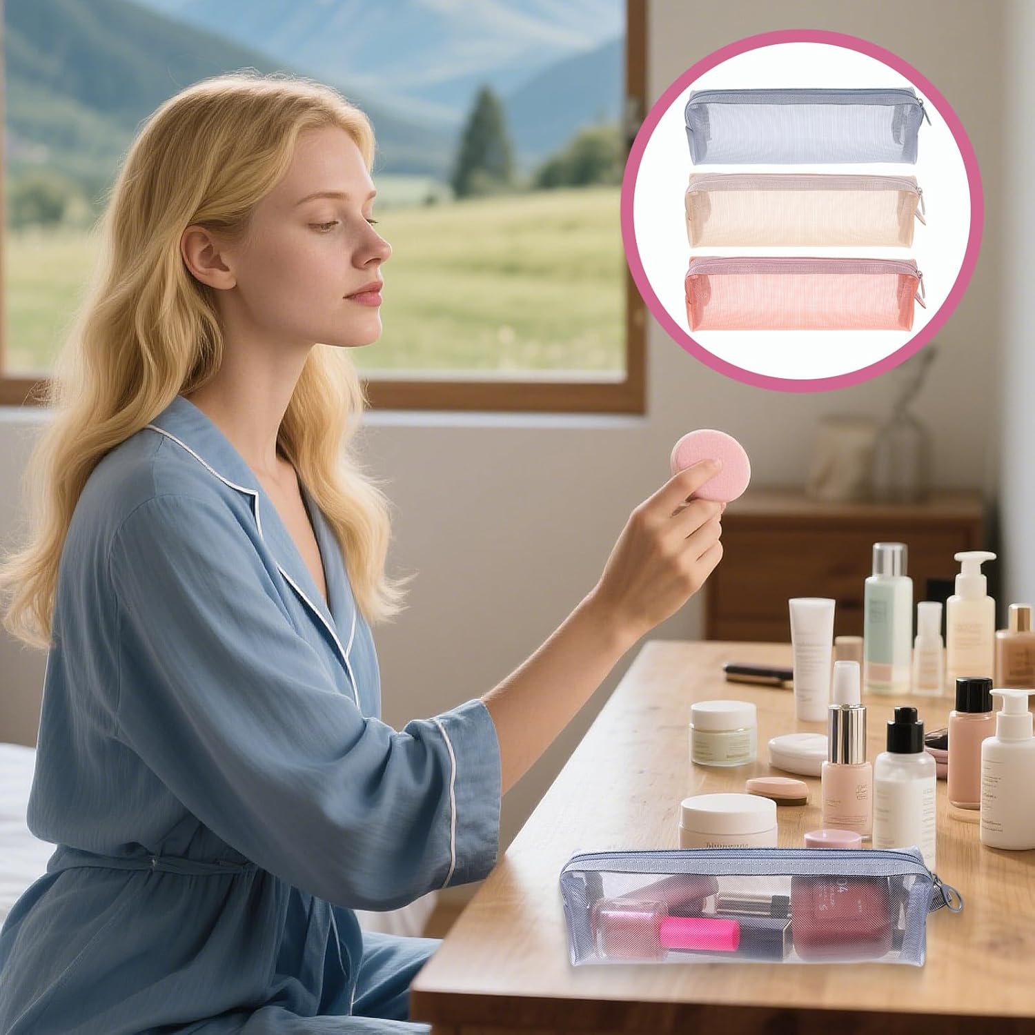 - [Package Content] You will receive 3 mesh makeup bags, including cosmetic bags in gray、khaki and pink. They are practical and beautiful, and the quantity is enough for your daily use, and you can also share them with your family