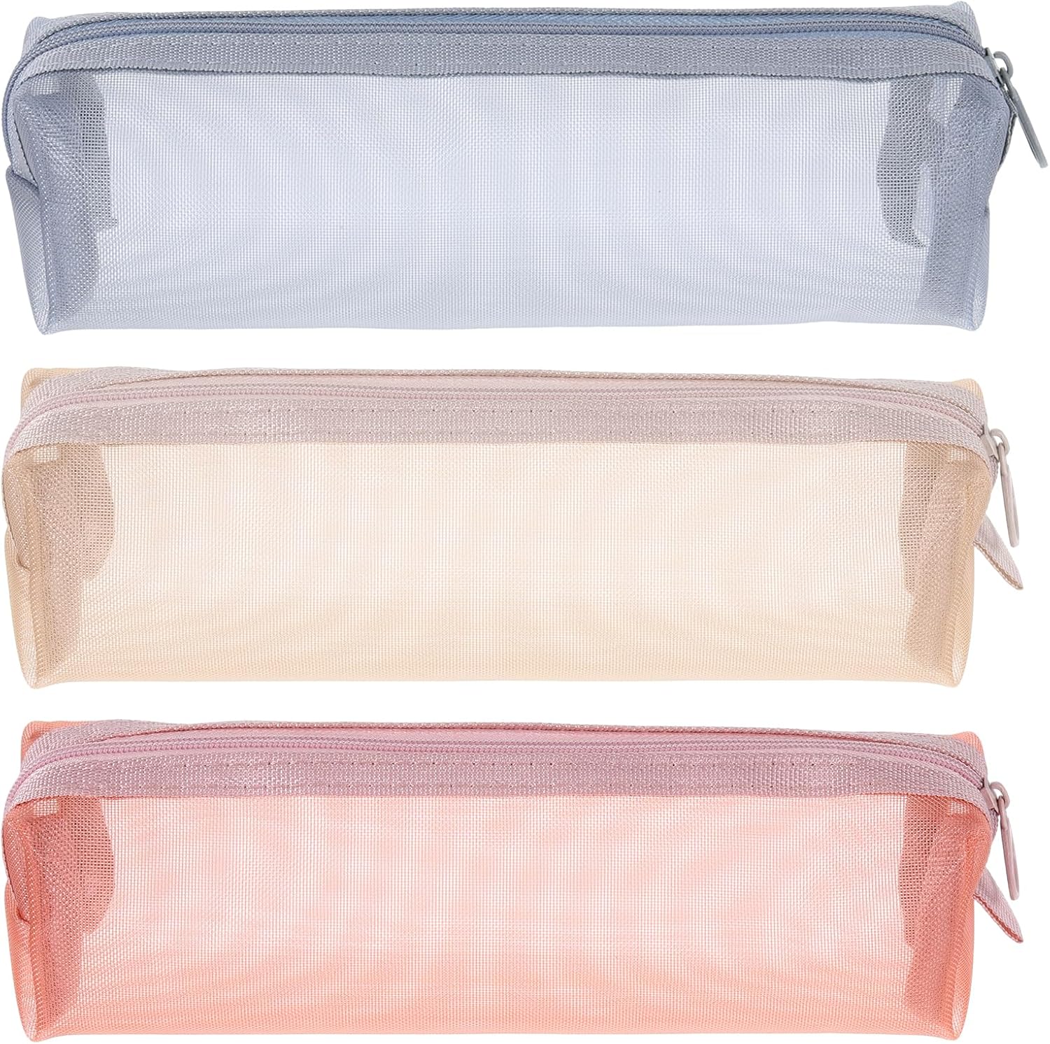 3PCS Mesh Makeup Brush Bag, Mesh Zipper Pouch Bags 7" Portable Travel Cosmetic Bag Square Pencil Case Organizer Stationery Storage Bags for Home Office Supplies Cosmetics Makeup Travel Accessories