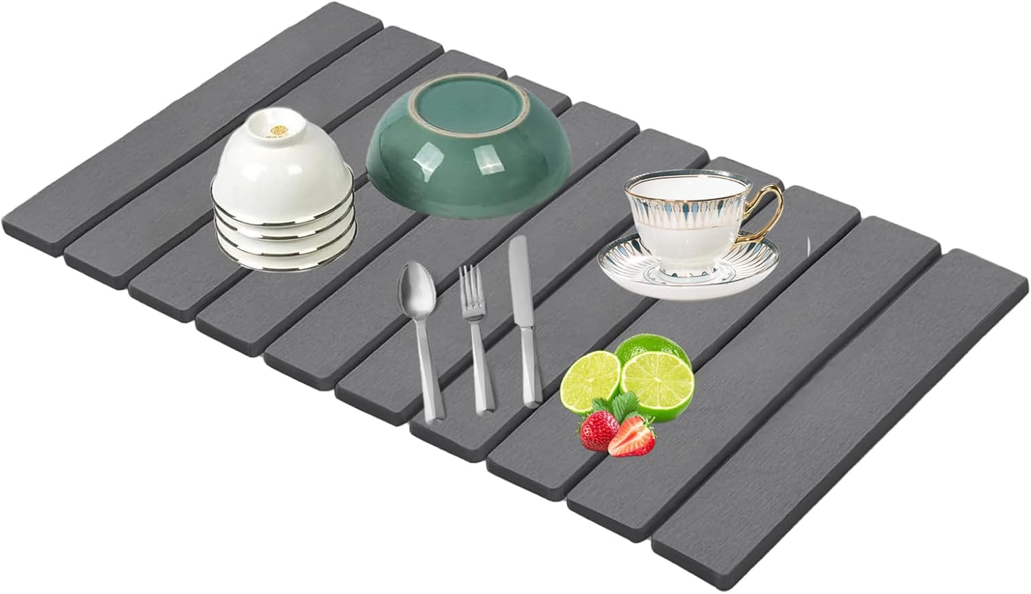 - 【Multi functionality】The self drying mat for kitchen counter is not only suitable for washed tableware, fruits and vegetables, but it can also be used as a thermal insulation mat, bath mat, plant tray, etc.Kitchen drying mat is an essential household product in your family life!