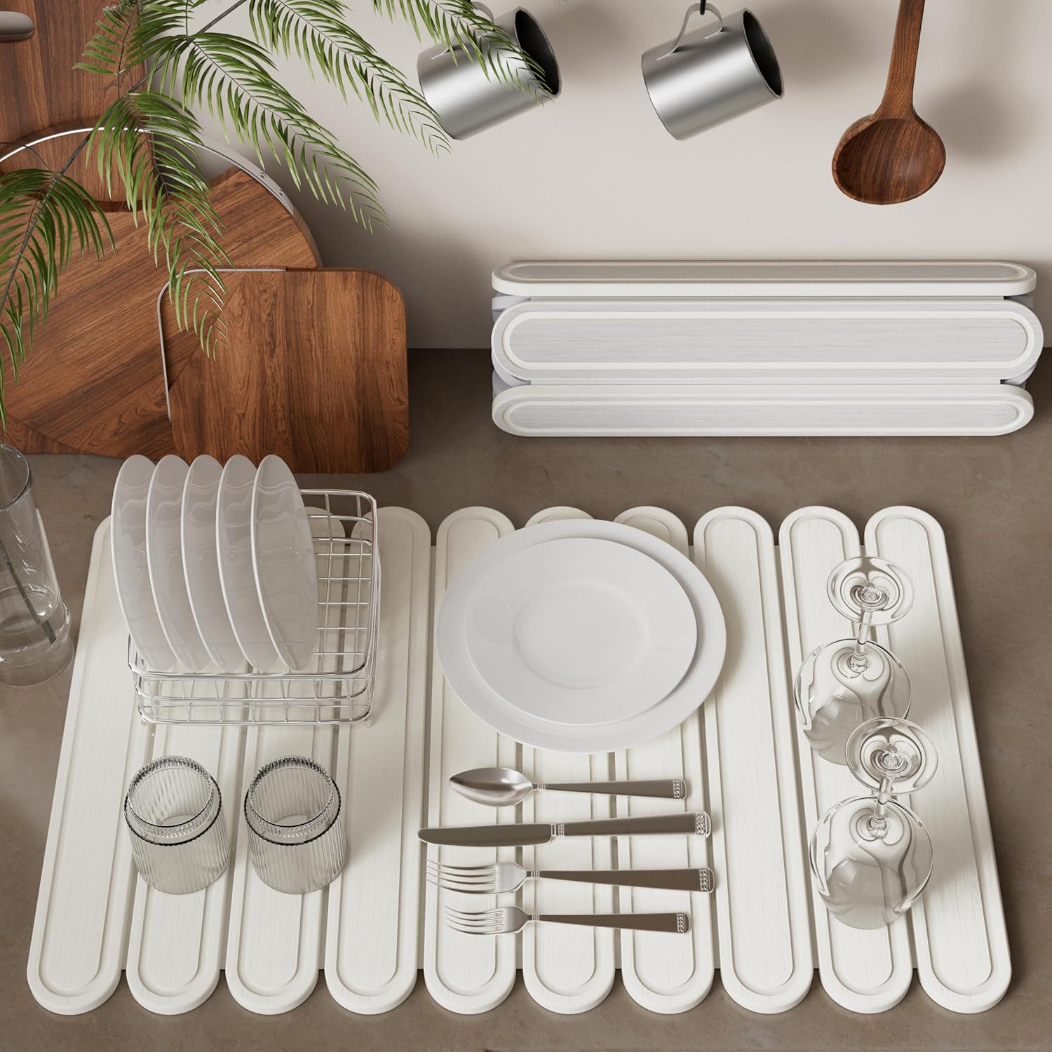 Stone Dish Drying Mat for Kitchen Counter, Quick Dry Stone Mat Kitchen for Dishes Bottles Cups, Large Foldable Diatomaceous Earth Dish Drying Mats Match Any Countertop, White
