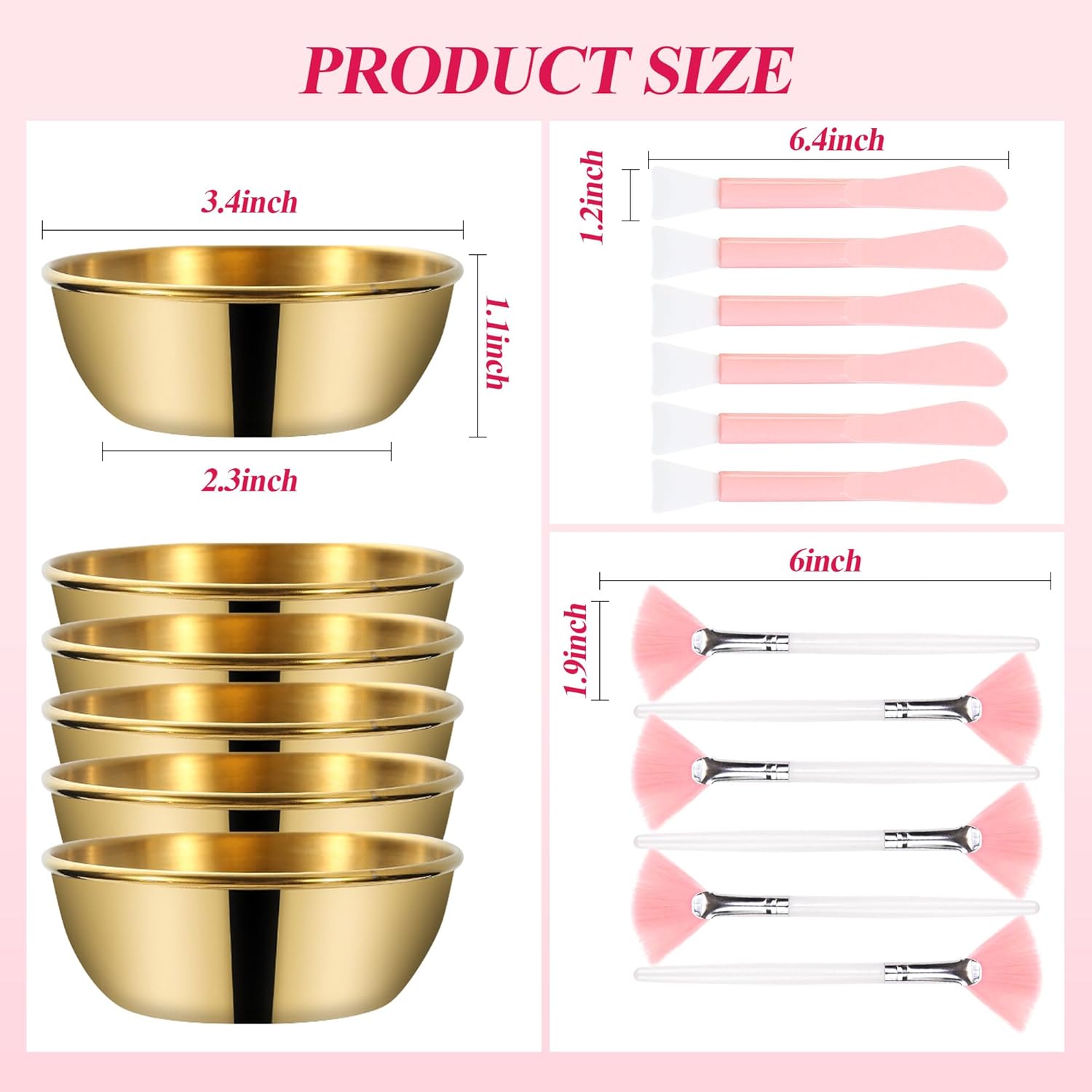 - Package includes: this facial product includes 6 gold mixed mask bowls (3.5X1.2 inches), 6 white handle fan brushes (6X2 inches) and 6 facial mask scrapers (5.5 inches long). This is the perfect combination of facial makeup and care.
