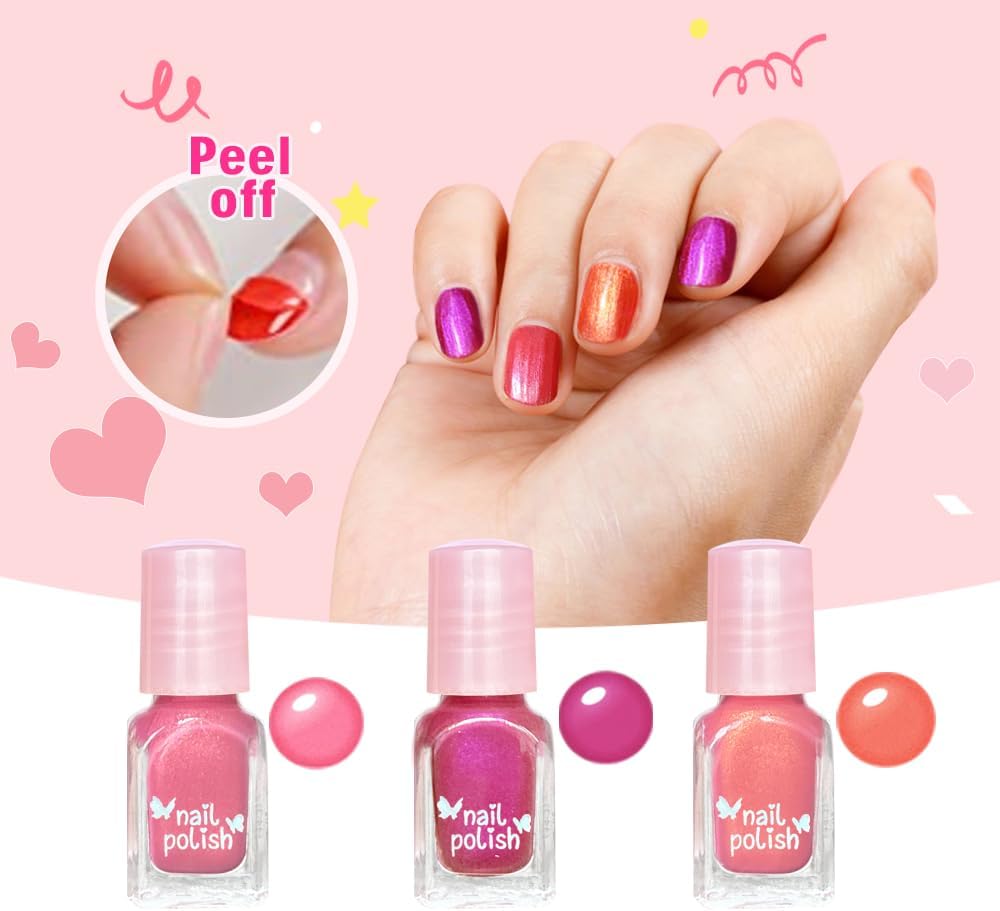 - 3 Quick-Dry Nail Lacquers + 5 Velvet Hair Jewels Includes salon-quality nail colors and cloud-soft hair ties in matching hues. All formulas are water-based and low-odor for fuss-free creative play