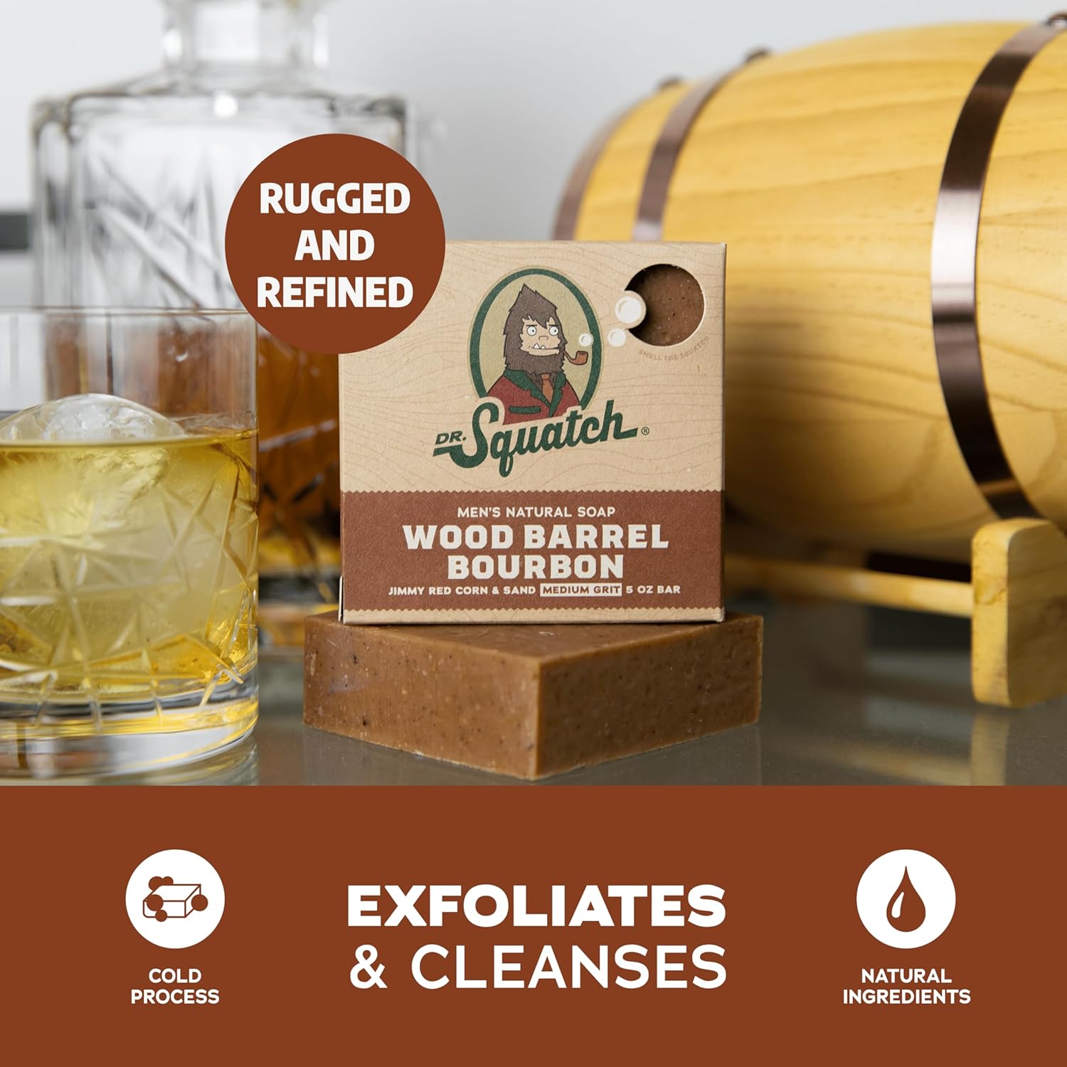 - RAISE THE BAR - Upgrade your shower with our sudstastic soaps featuring one of Dr. Squatch’s favorite scents: Wood Barrel Bourbon.