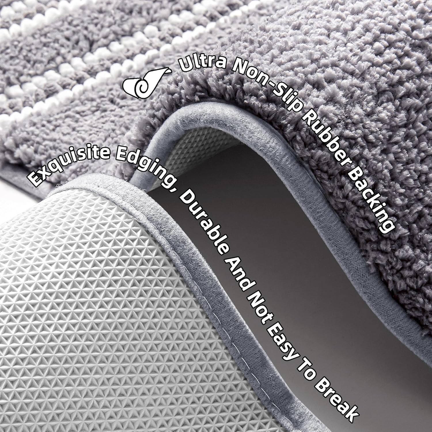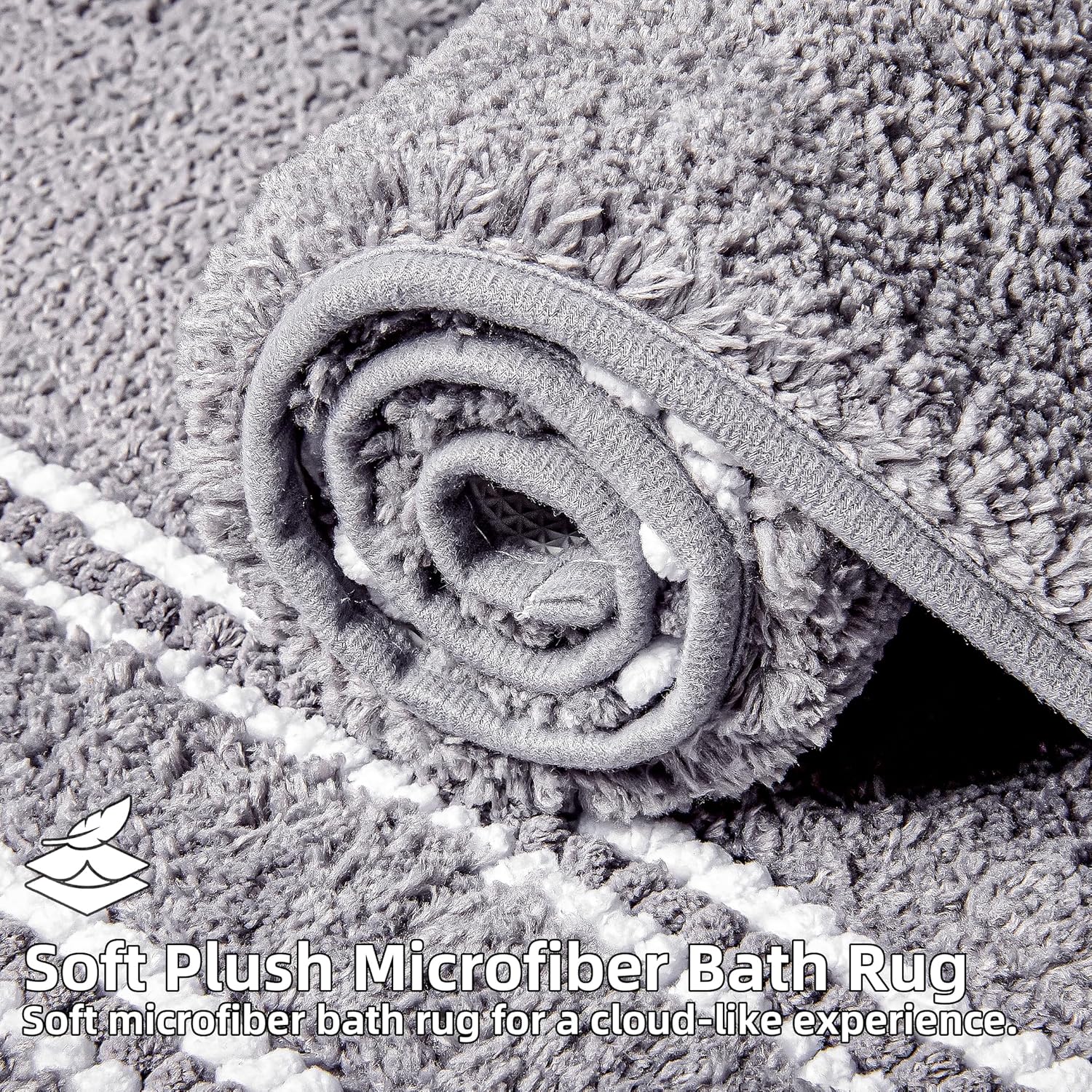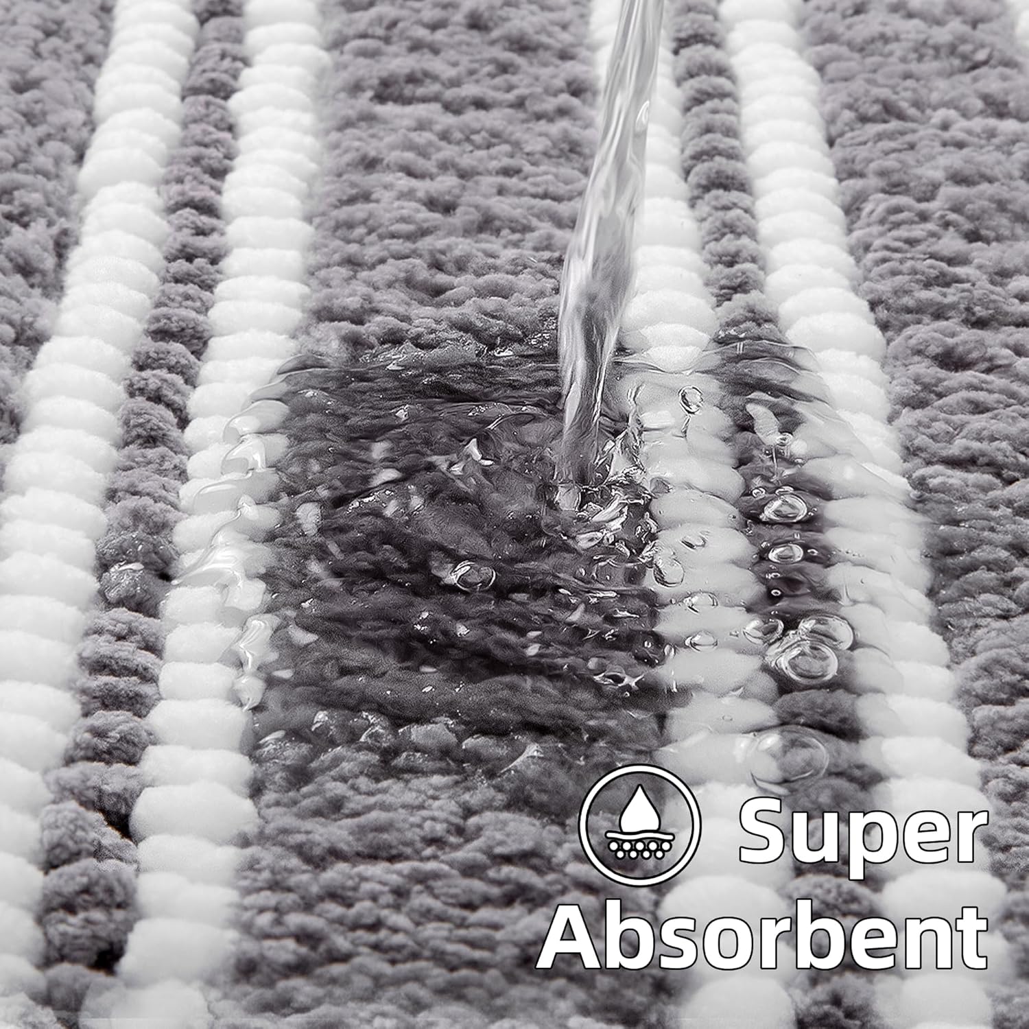 Bathroom Rugs 24x36 Extra Soft Absorbent Bath Mat Chenille Non Slip Shower Mat Rubber Backing Machine Washable Bath Mats for Bathroom Shaggy Grey Bath Rugs for Tub, Hallway