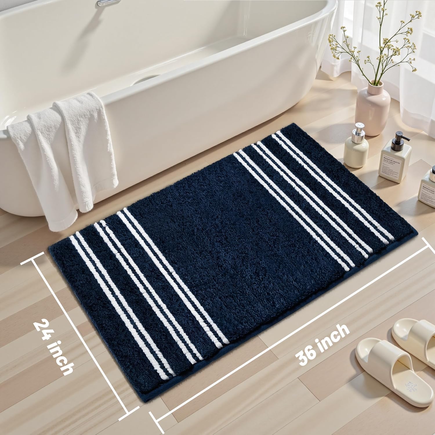 - 【Absorbent Bath Mat】The surface of this non slip bath mat is made of chenille and tufting, a material with extremely high water absorption speed. These bath rugs for bathroom quickly absorb and diffuse throughout the bathroom rugs, keeping the surface dry. The bath mat can keep the environment dry and clean, and has good breathability.