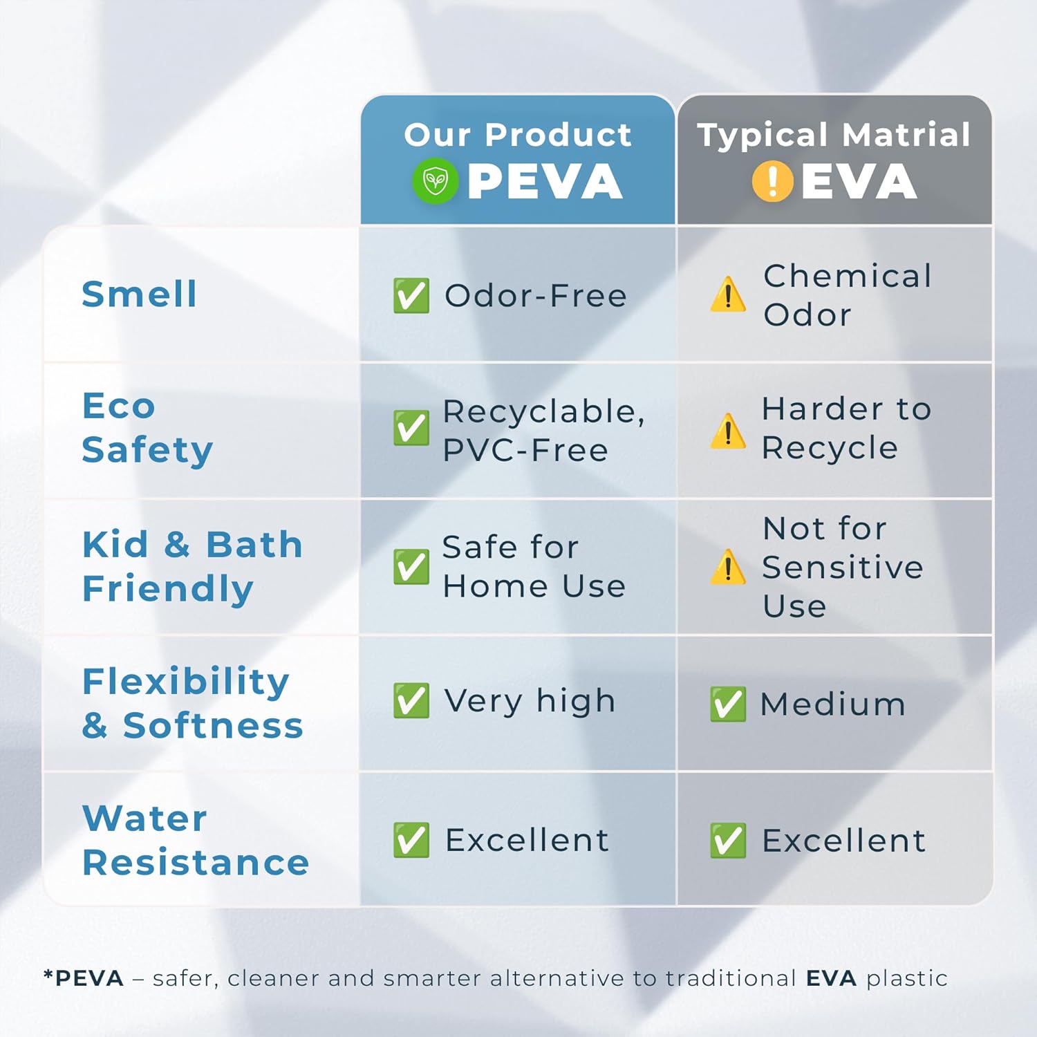 - Premium PEVA - Safe, Soft & Built to Last. Non-toxic alternative to EVA, suitable for kids, seniors, and families who prioritize daily comfort and protection