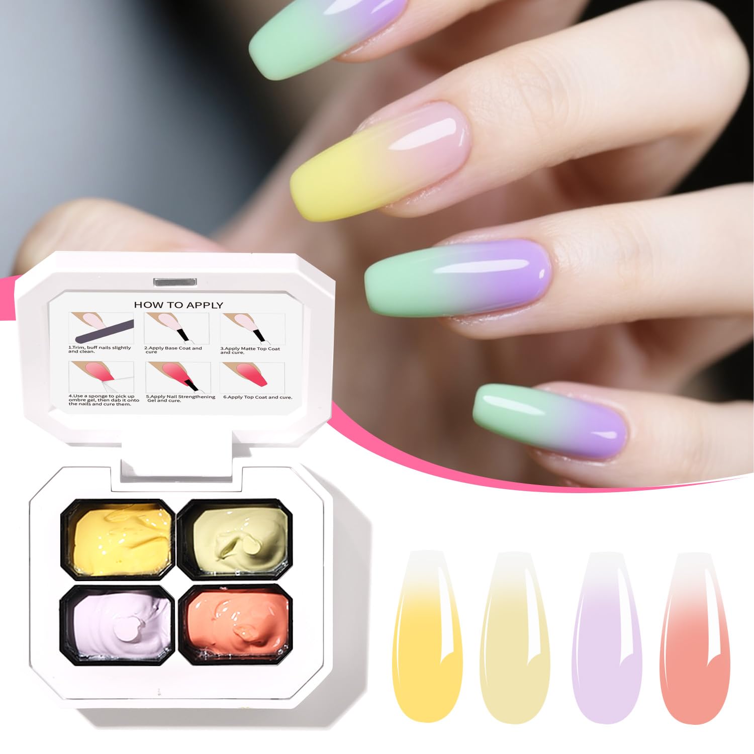 - Ombre Gel Effects for Nail:The innovative formula of ombre gel nail polish ensures your ombre nails maintains good opacity for ombre gel transitions without streaks or patchiness, and stay vibrant without fading, while remaining easy to remove when desired.