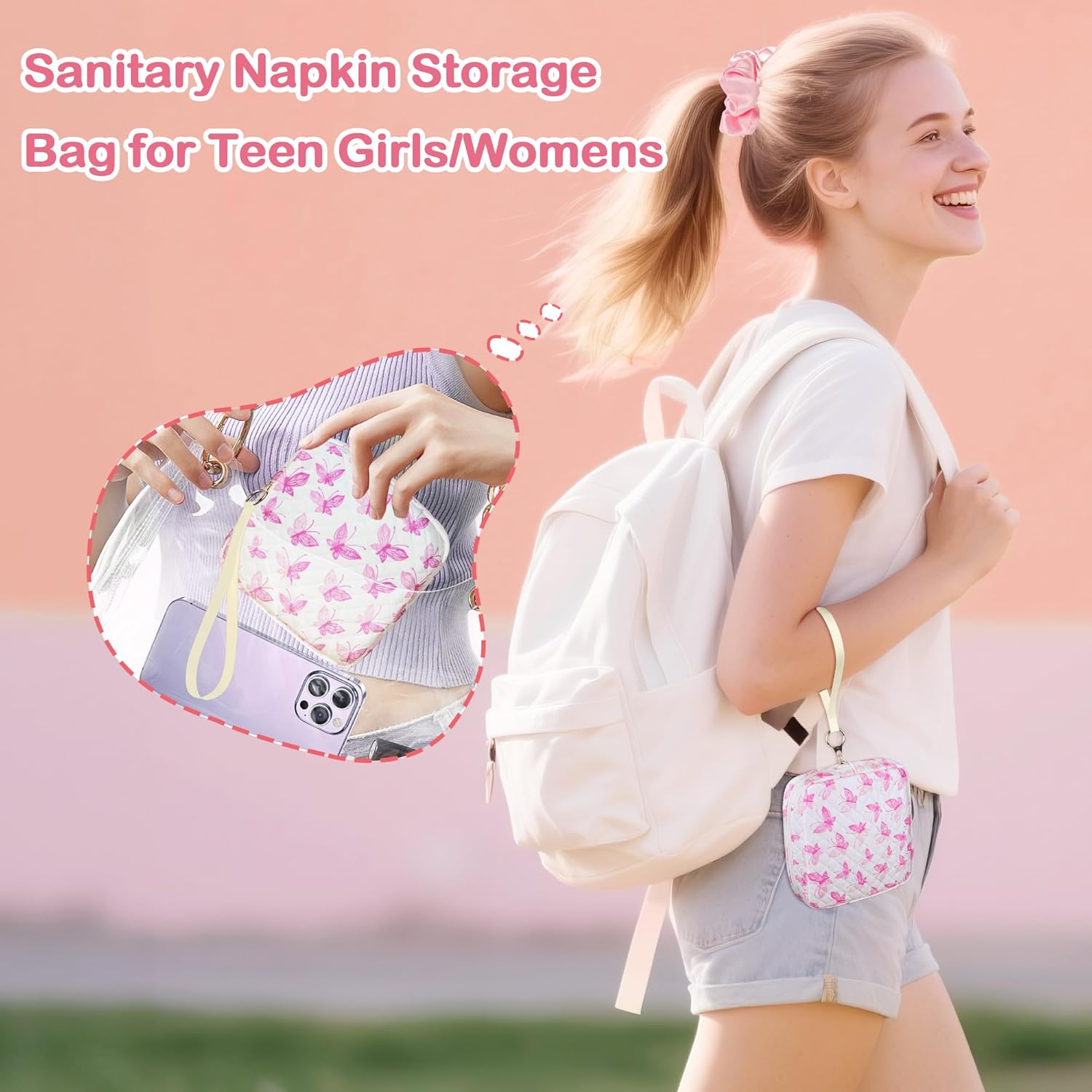 - Period Bag for Girls:On her special day, she can avoid her small embarrassment and bring her some good mood. The period bag for teen girls is made of high-quality polyester, can be used with confidence