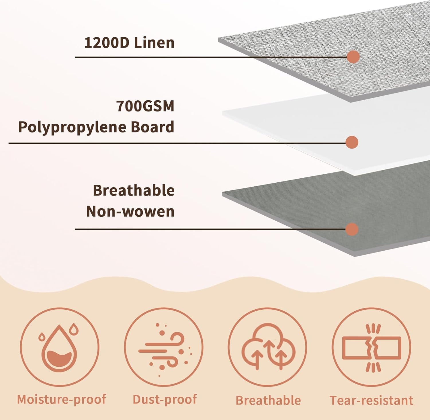 - Great Material: Made with 1200D linen and breathable non-woven fabric, resists tearing, dust, and moisture. Thick PVC cover adds waterproof protection