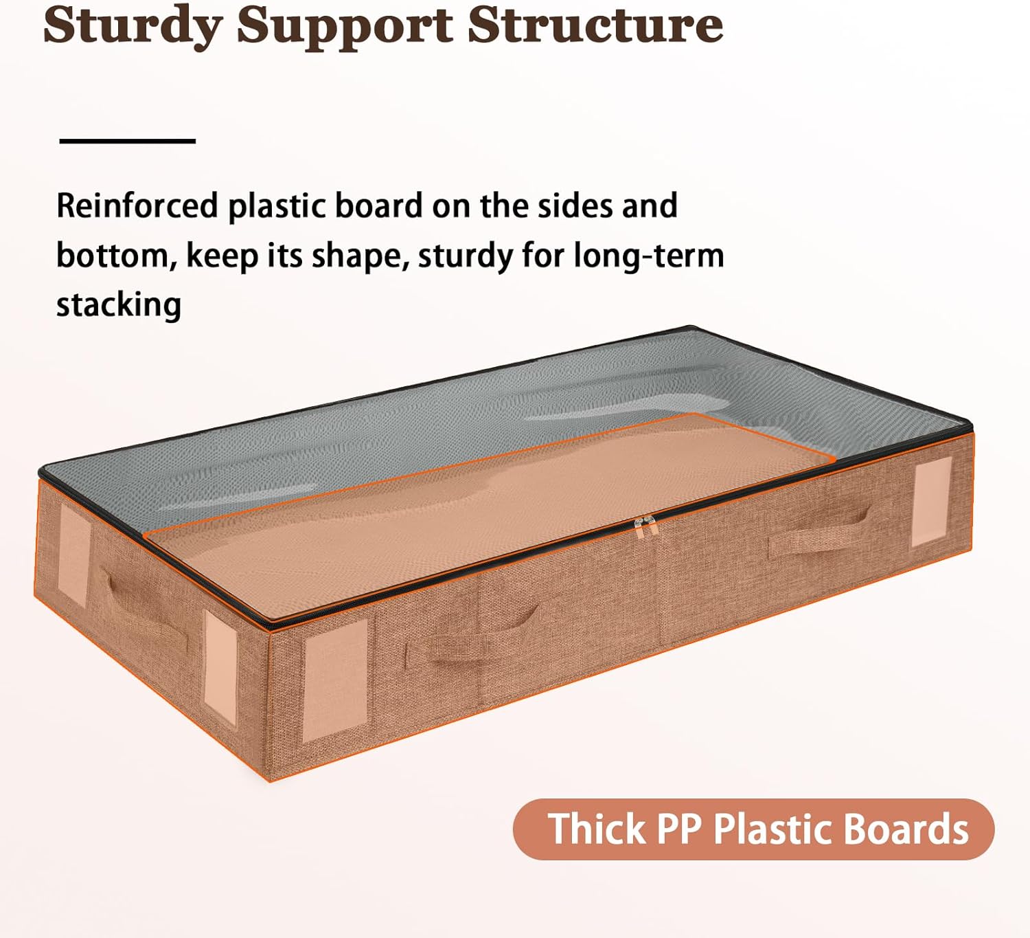 - Sturdy Support Structure: Reinforced plastic board on the sides and bottom (not flimsy cardboard) , our under bed storage bins keep its shape and easy stacking, sturdy for long-term use