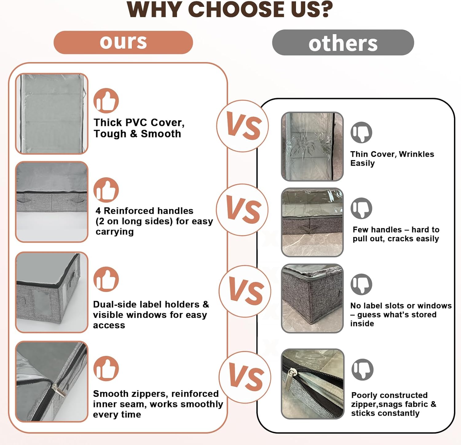 - Easy Access&View: Large clear top window allows you to to see what’s inside easily; the label holders with blank cards on two sides for your mark, two visible windows help you identify the contents more quickly. 4 reinforced handles make it easy to carry and pull out from under the bed. Double strong metal zippers making for smooth and easy open and close