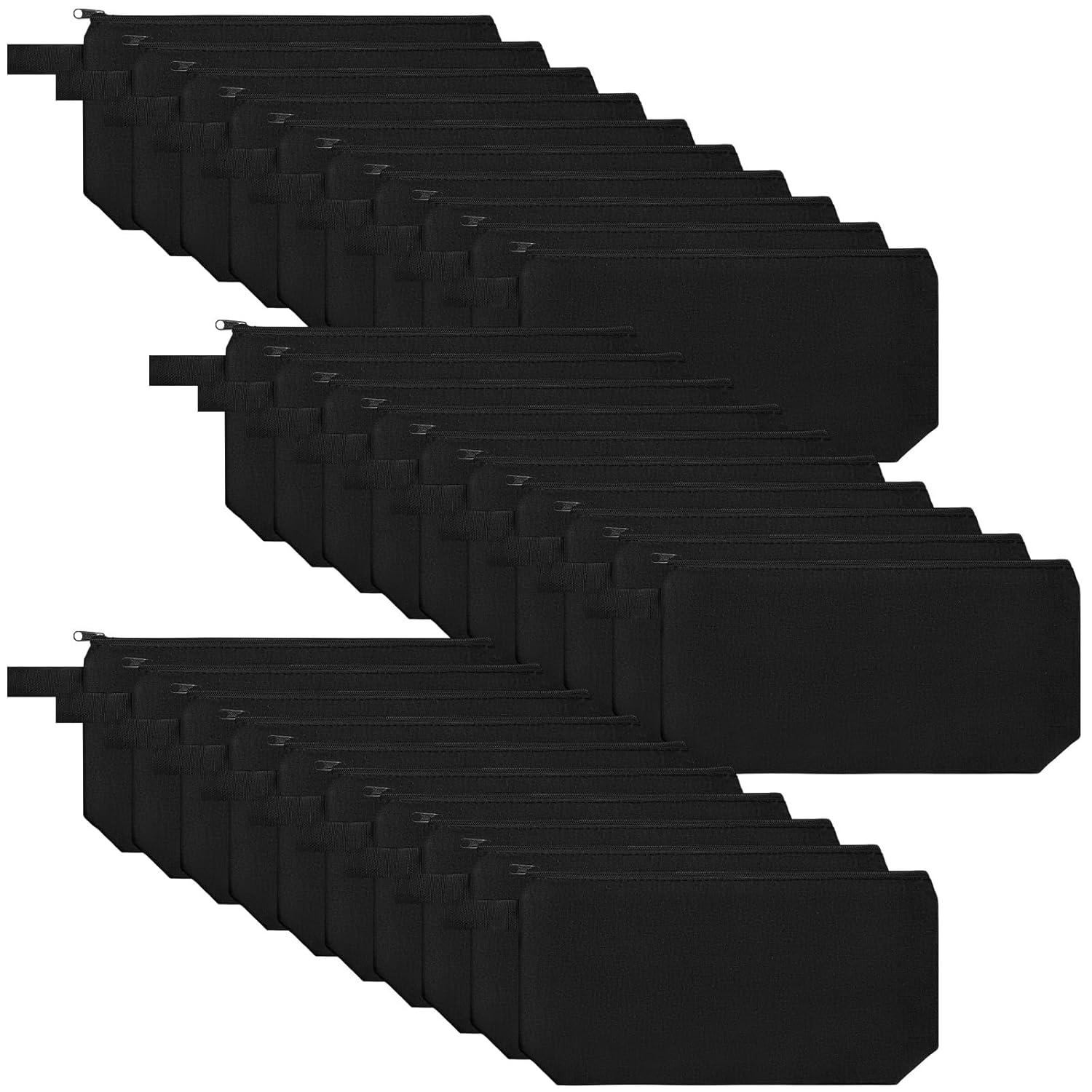 Saintrygo 30 Pcs Makeup Bag Travel Canvas Cosmetic Bag Bulk Multipurpose Small Makeup Pouch for Purse Portable Blank Zipper Toiletry Organizer DIY for Women Assorted Color (Black,9.8 x 5 x 2 Inch)