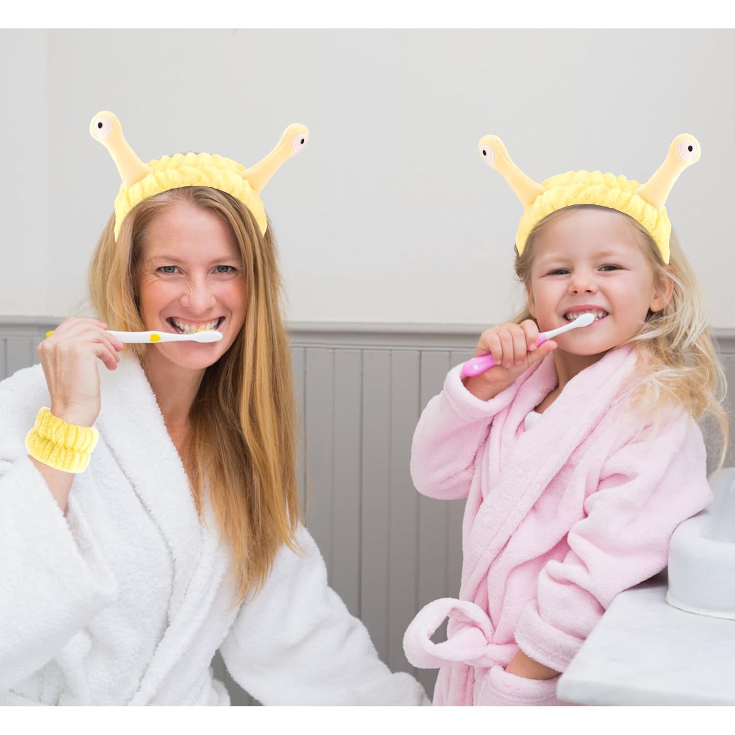 VELSCRUN Spa Headband, Makeup Face Wash Skincare Headbands, 5 Pcs Sponge Get Ready Snail Hairband Facial Wristband Hair Clip Set, Stuff for Teen Girls Women Trendy Hair Accessories Yellow
